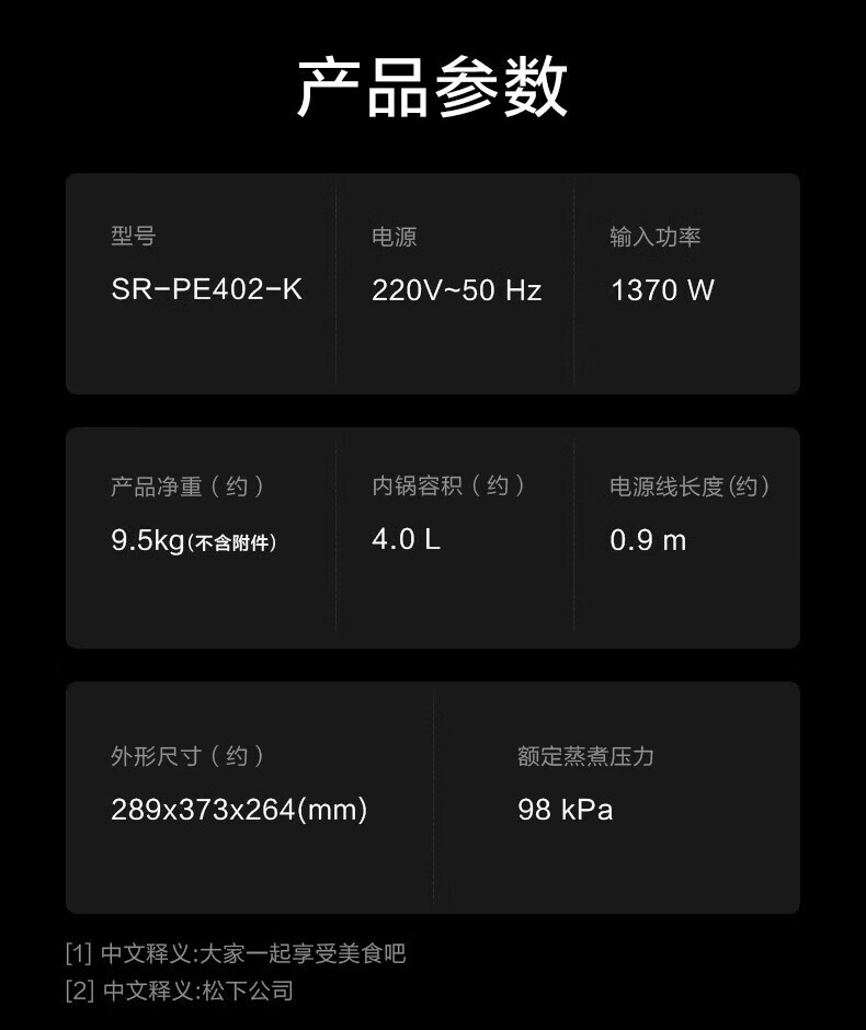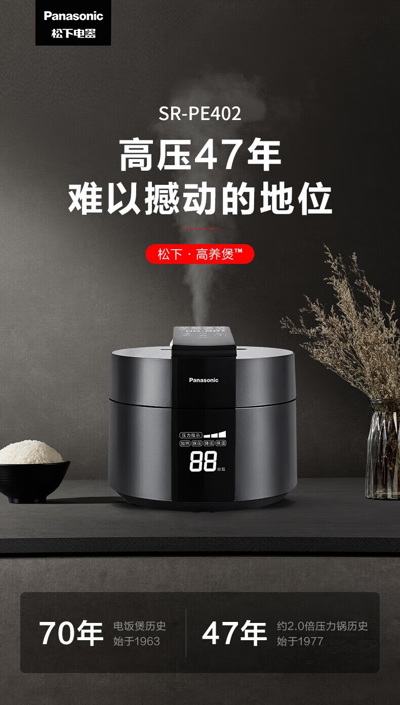 松下(Panasonic)【国家补贴】饭煲煲电饭煲3-4人家用IH加热压力电饭锅多功能煮饭锅智能预约4升以旧换新SR-PE402-K