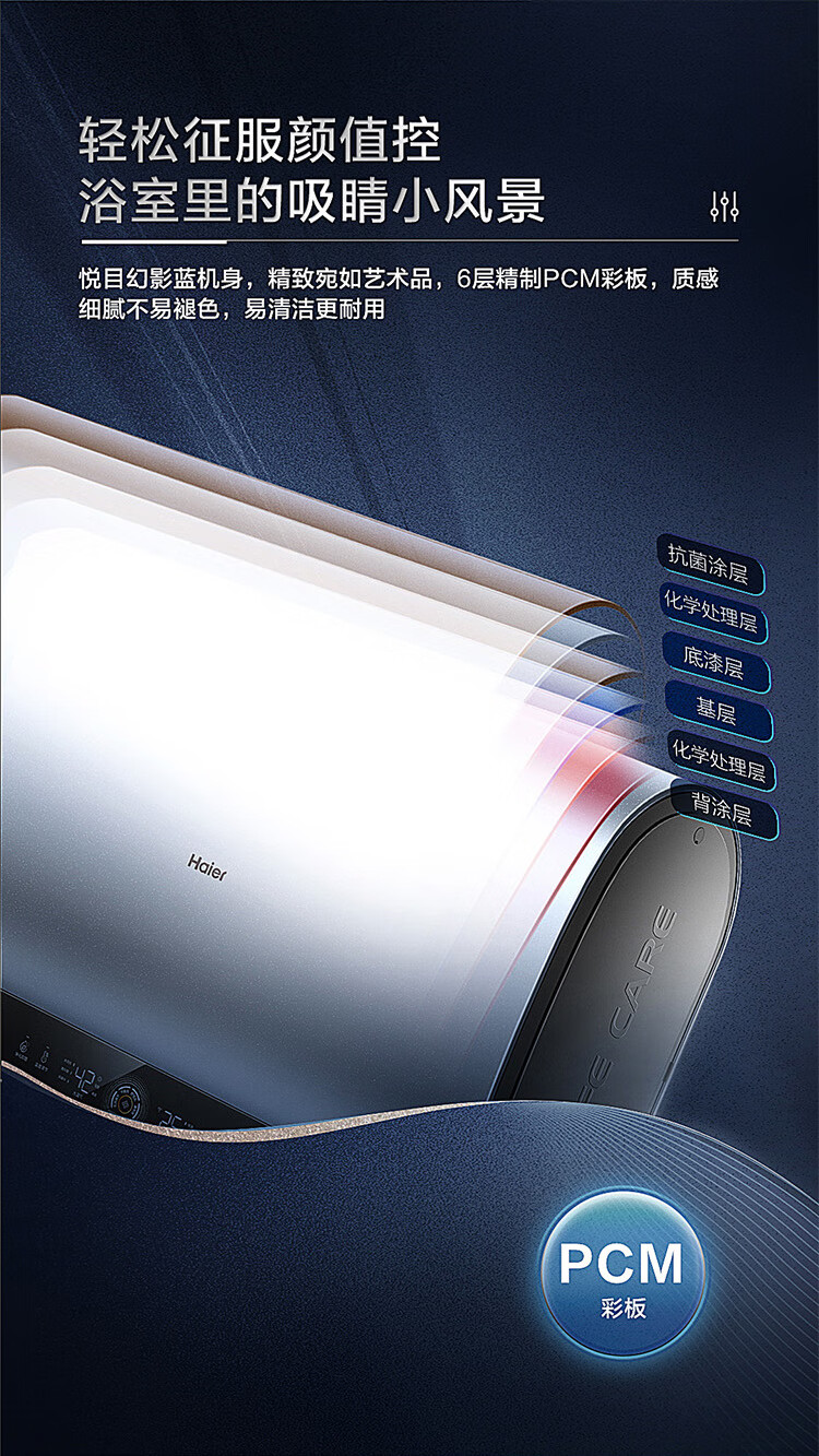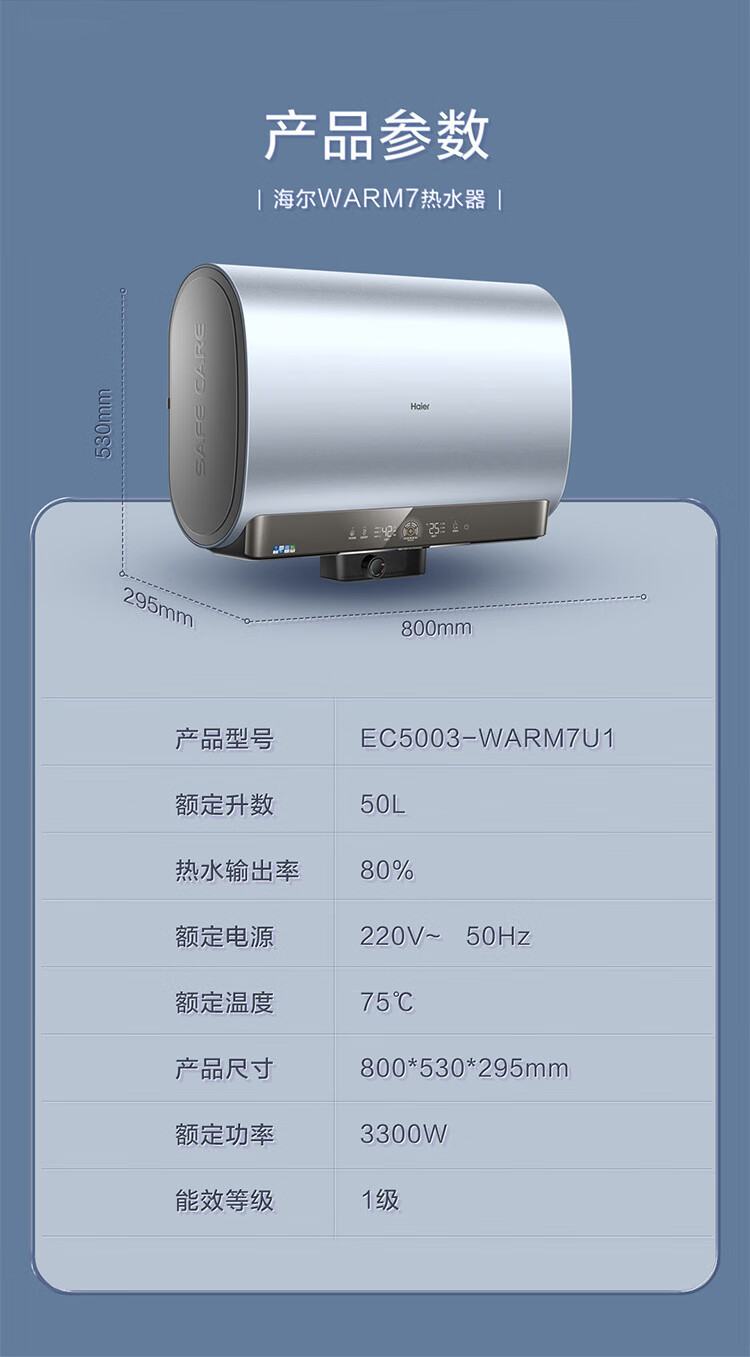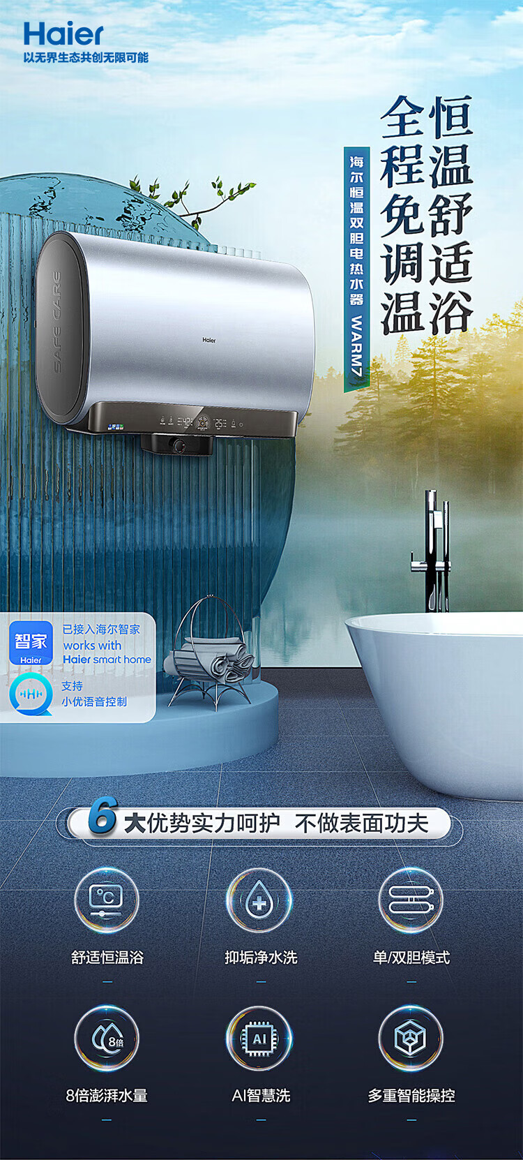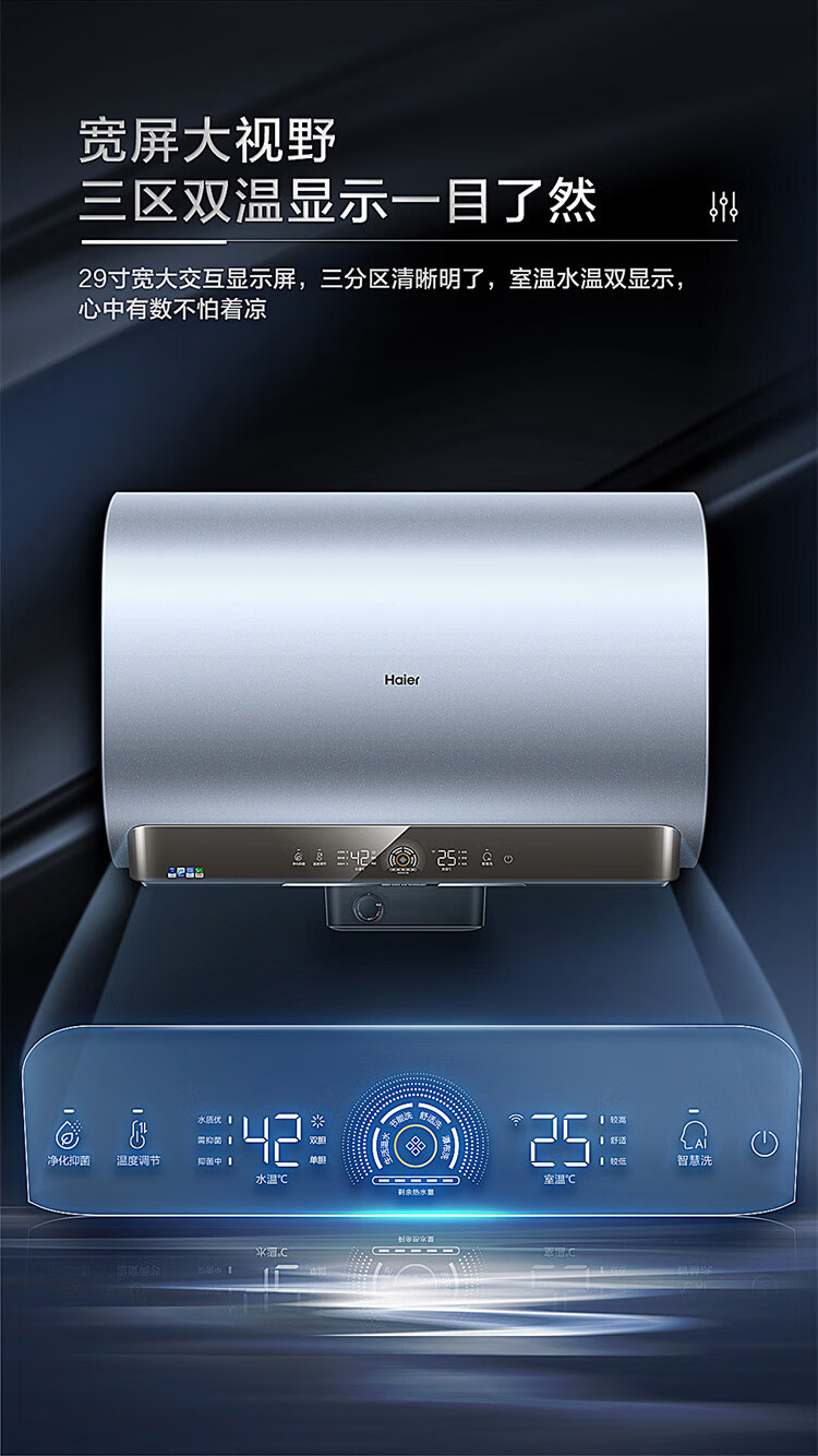 海尔(Haier)50升智能恒温超薄扁桶双胆家用电热水器大水量防烫黑科技隐藏安装EC5003-WARM7U1一价全包以旧换新