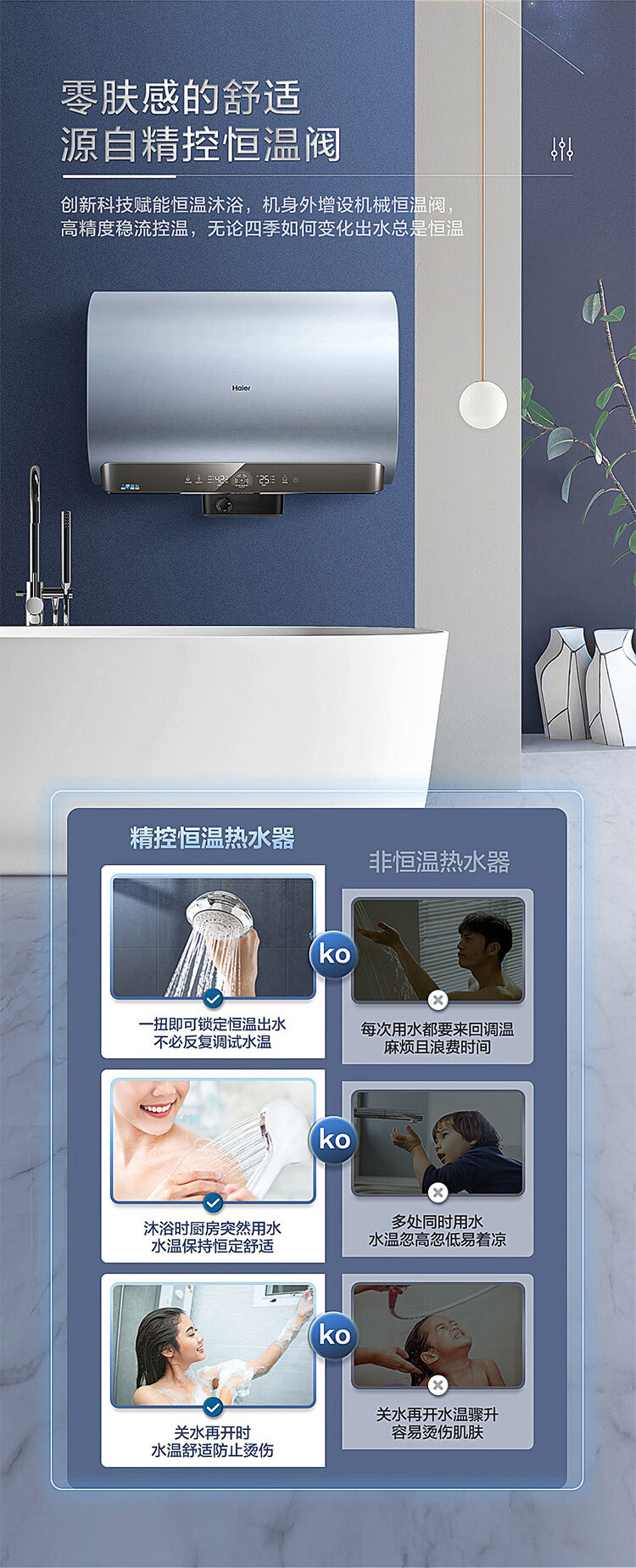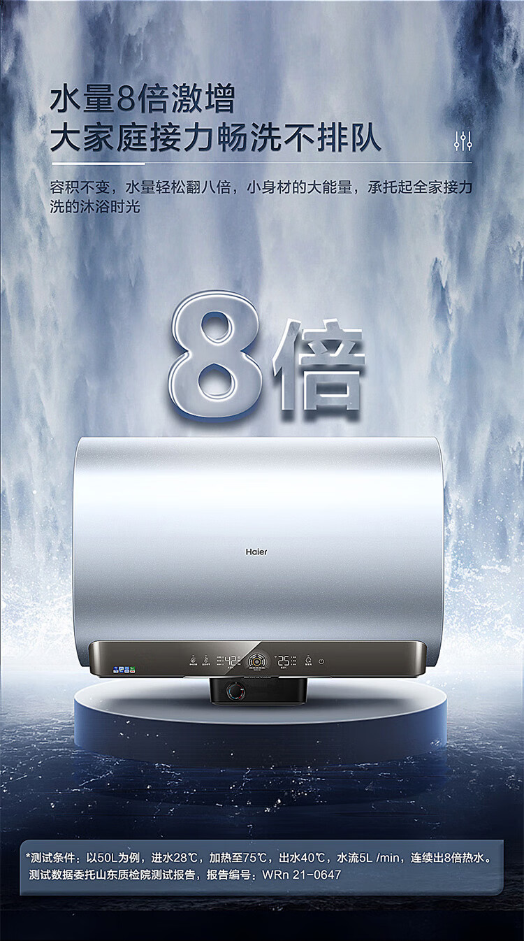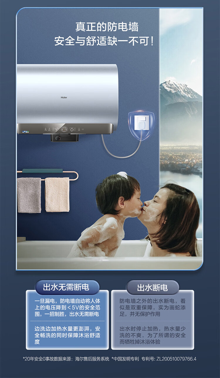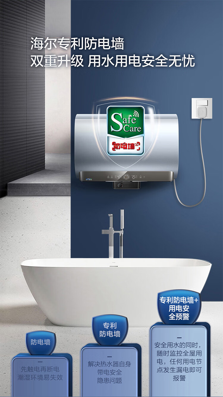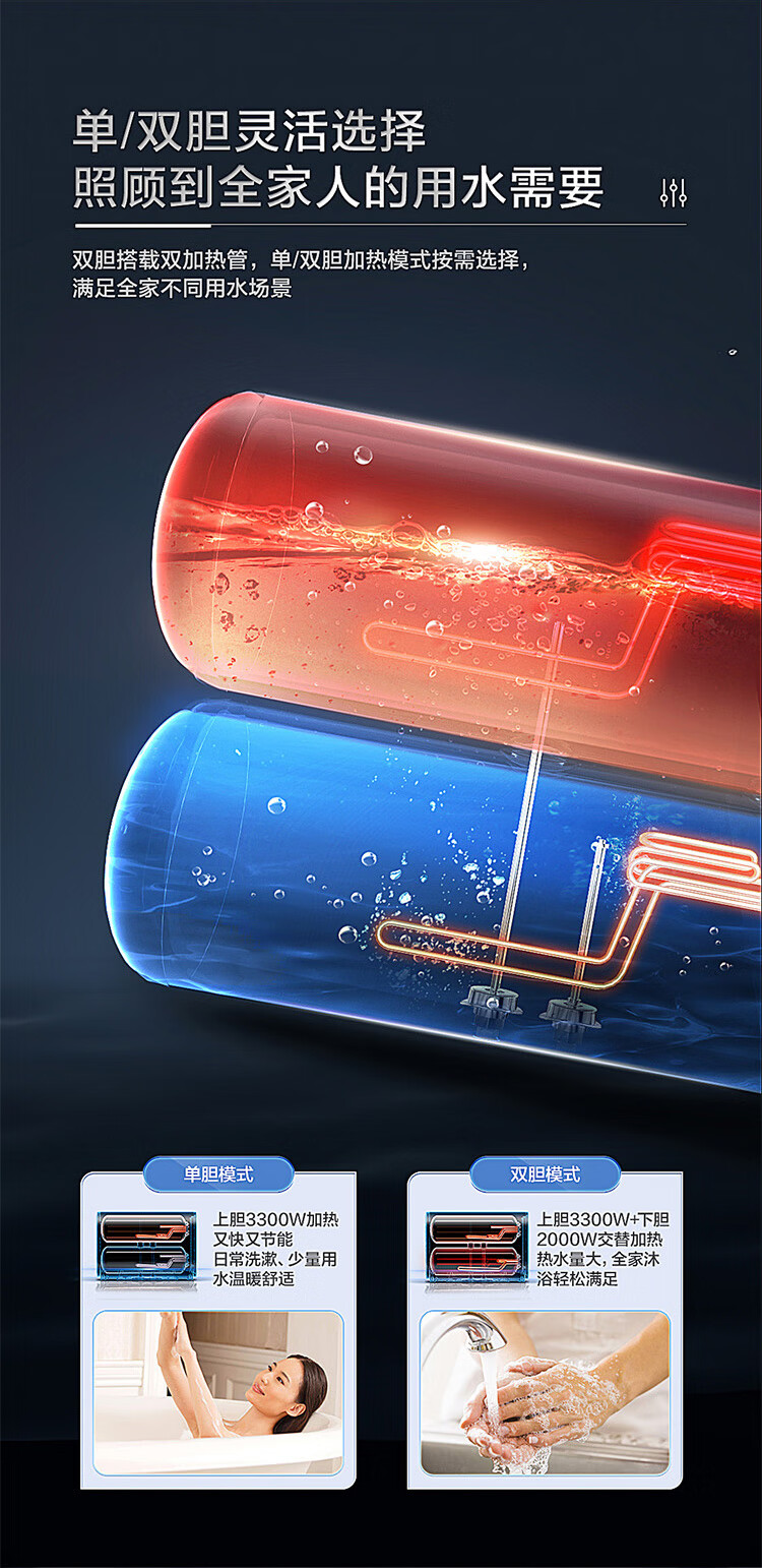 海尔(Haier)50升智能恒温超薄扁桶双胆家用电热水器大水量防烫黑科技隐藏安装EC5003-WARM7U1一价全包以旧换新
