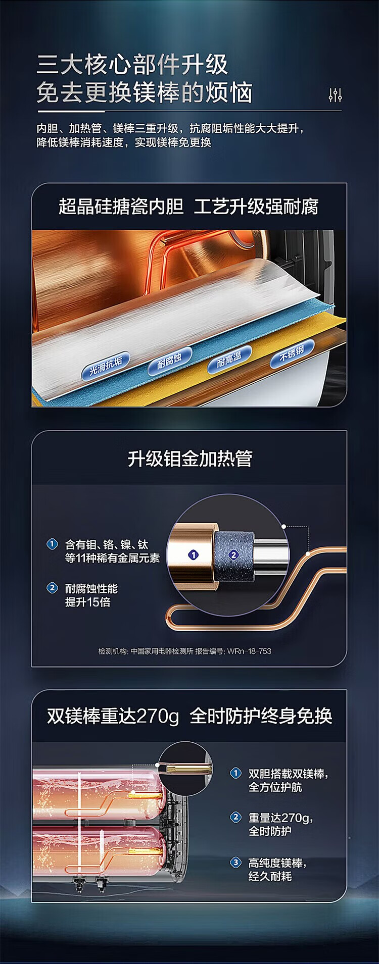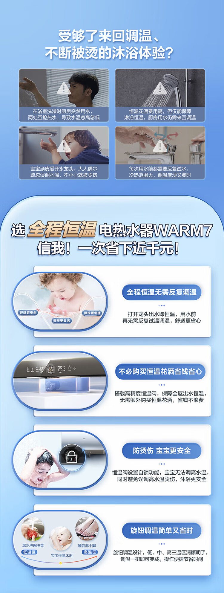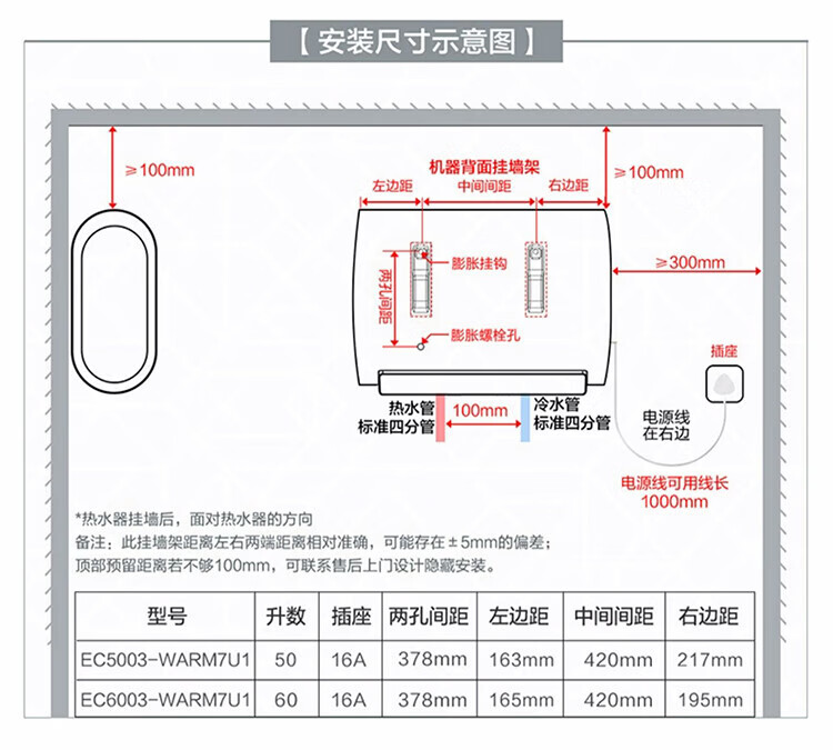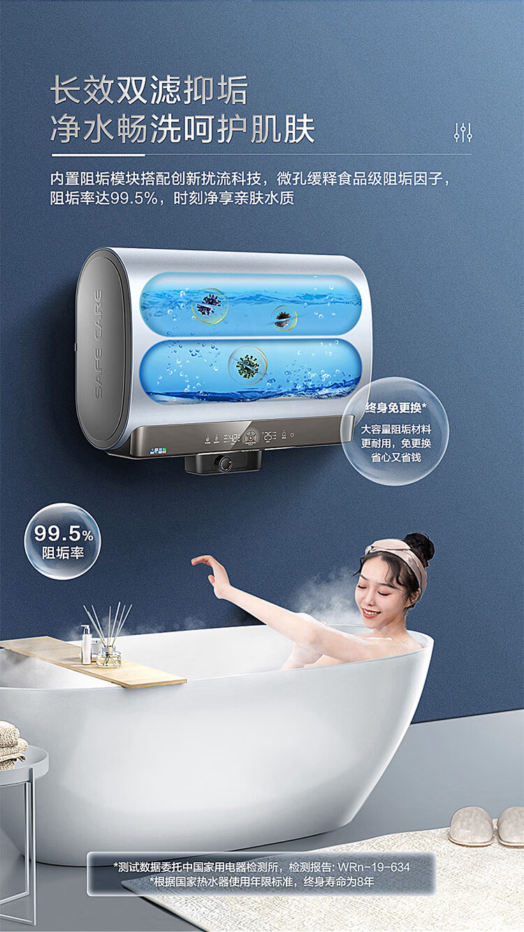 海尔(Haier)50升智能恒温超薄扁桶双胆家用电热水器大水量防烫黑科技隐藏安装EC5003-WARM7U1一价全包以旧换新