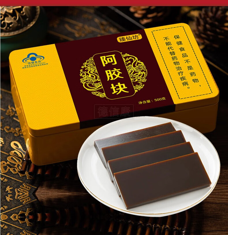 臻仙坊阿胶 阿胶糕 阿胶固元糕 铁盒装 2盒(500克/盒)