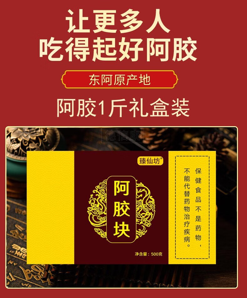 臻仙坊滋补 阿胶块 山东阿胶片 驴胶 250克(免费教熬)