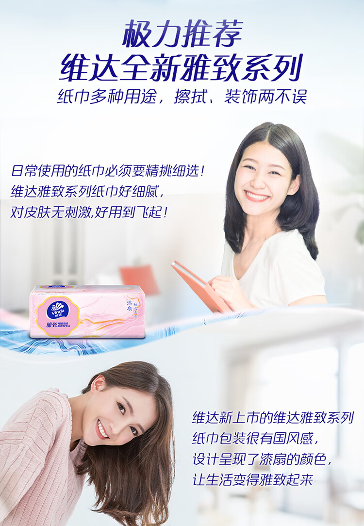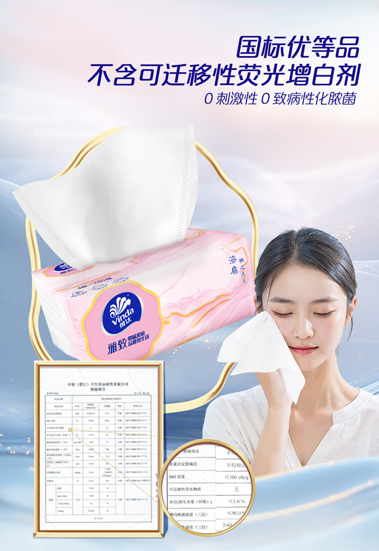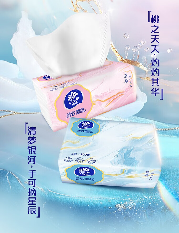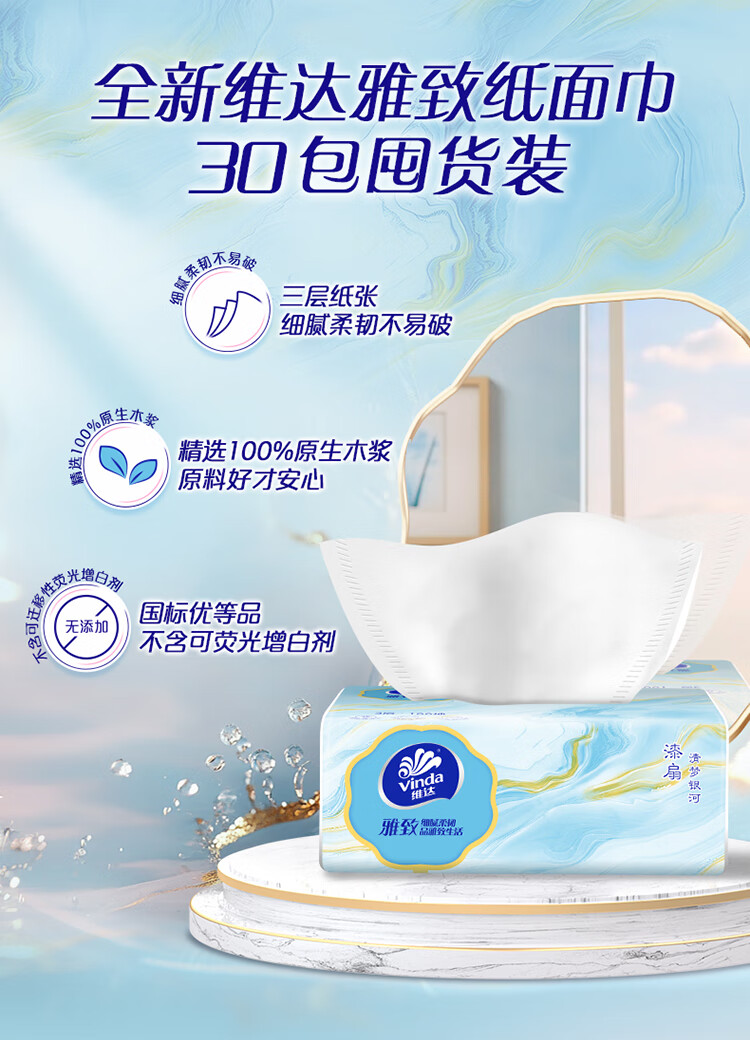 维达(Vinda)抽纸 雅致系列纸巾 3层加厚100抽餐巾纸 家用卫生纸【活动3】 3层 100抽*30包 【整箱装】