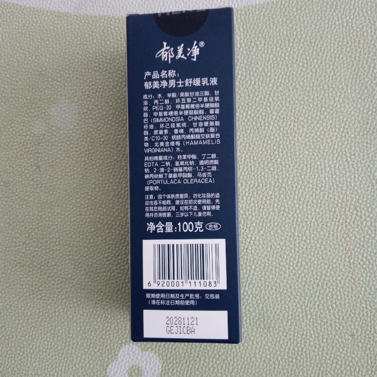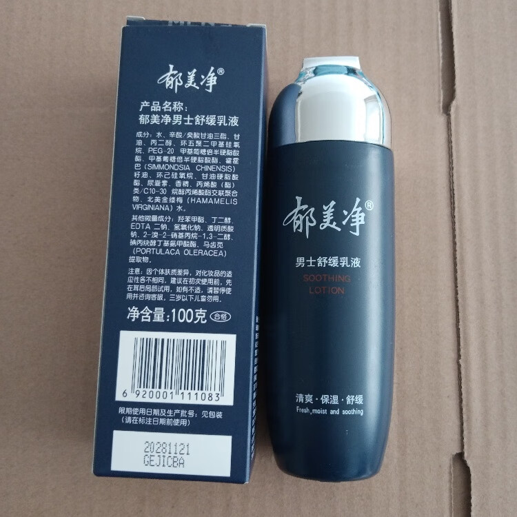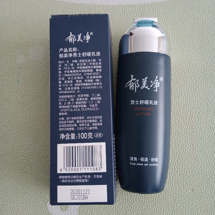 郁美净男士舒缓乳液100g收缩毛孔清爽男学生面部保湿霜补水护肤秋冬面霜 一瓶【100g】新老包装随机