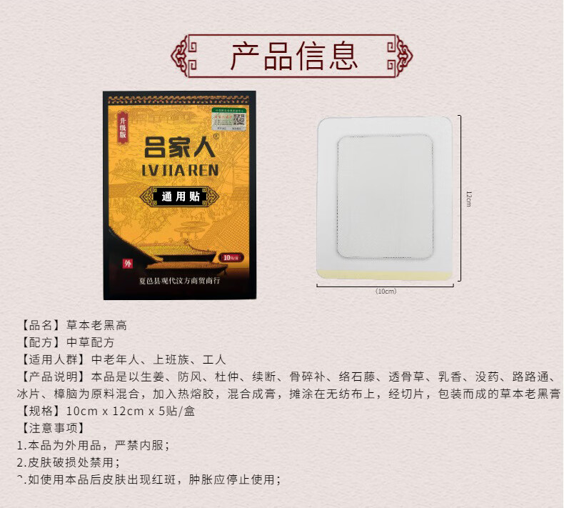 吕家贴医用冷敷贴老款夏邑县膏药腰椎间盘突出颈椎痛膏药贴老吕家转 吕家人人冷敷贴夏邑 (老年人五送五)10盒
