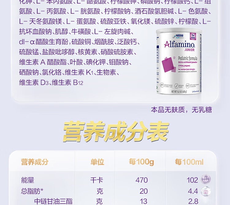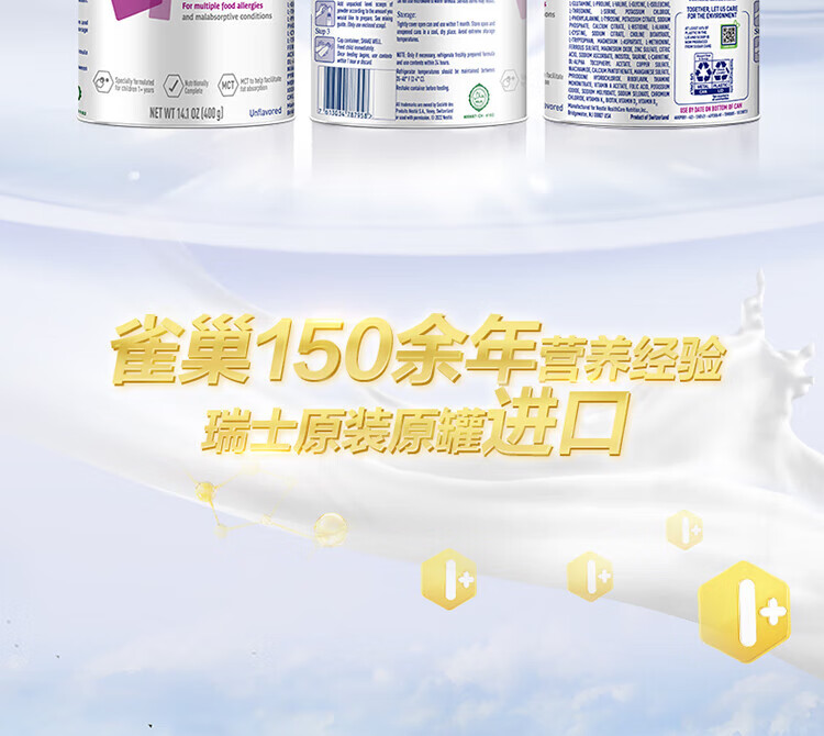 雀巢健康科学无敏氨基酸配方粉恩敏舒1+400g*单罐 正品保证