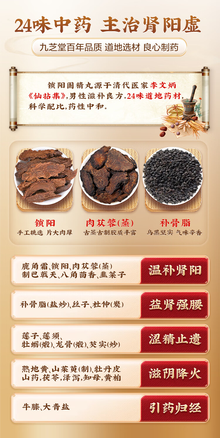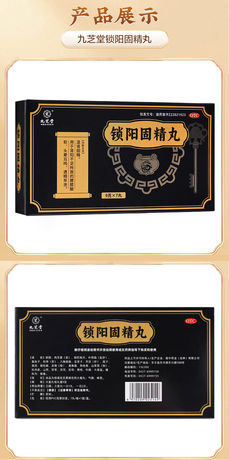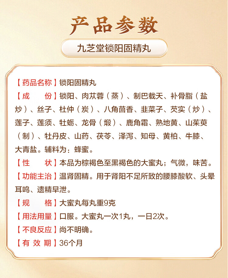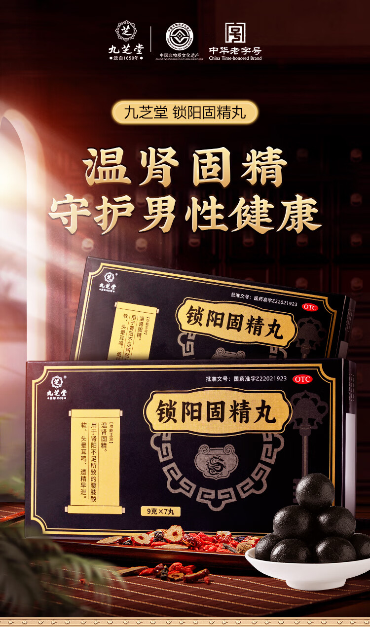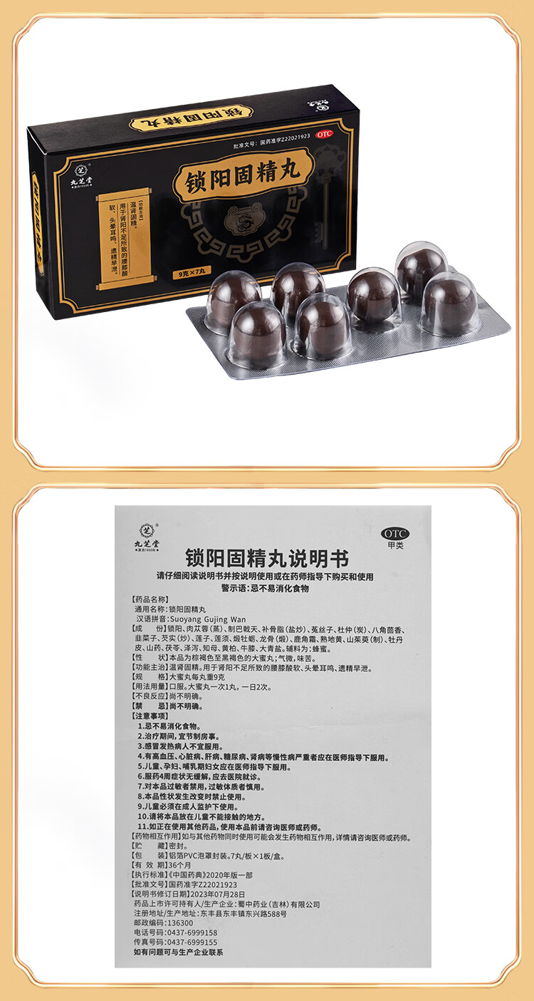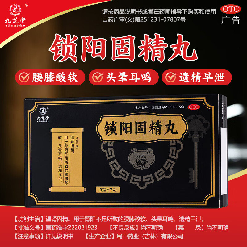 九芝堂 锁阳固精丸 9g*7丸/盒温肾固精 肾阳不足 腰膝酸软 头晕耳鸣 遗精早泄 京东自营 男科用药非浓缩丸