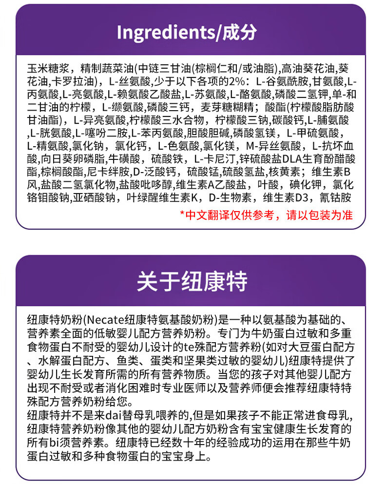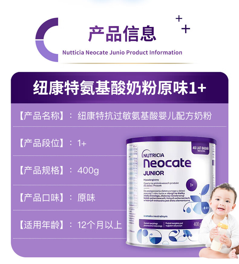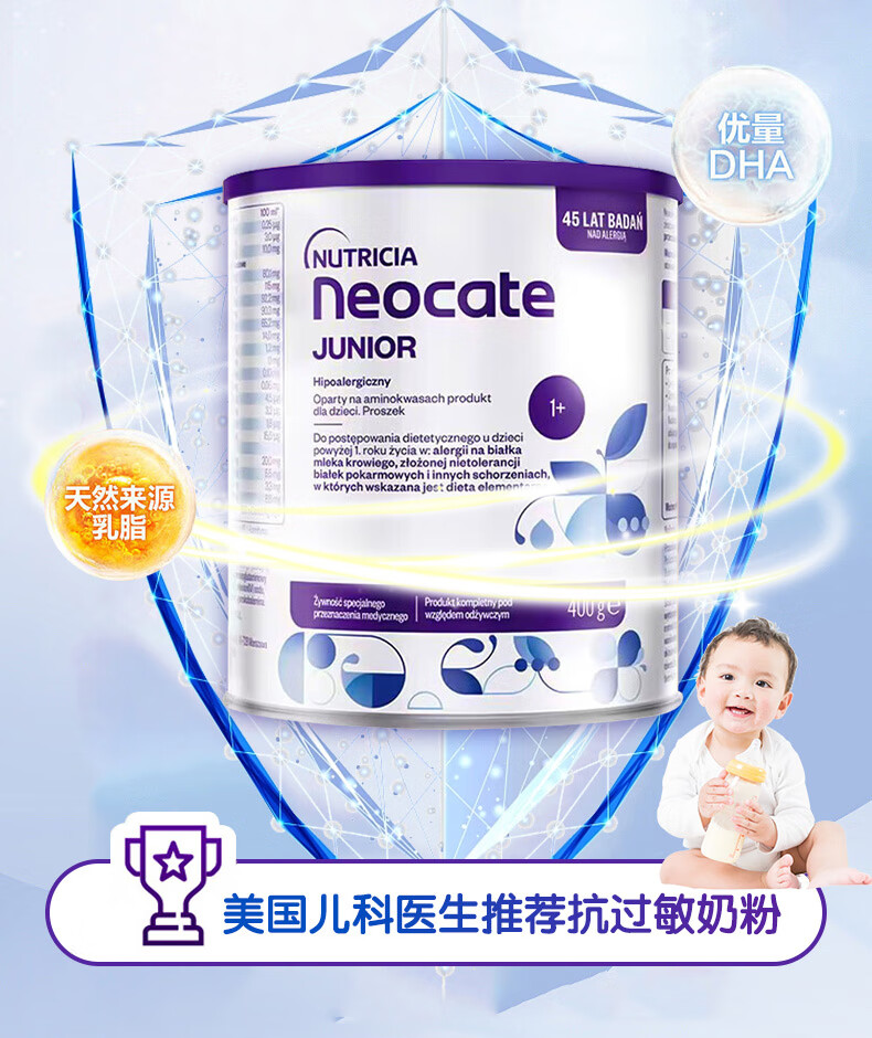 纽康特(Neocate)氨基酸奶粉完全水解无乳糖配方防腹泻拉稀1+ 400g 原味 效期26.3