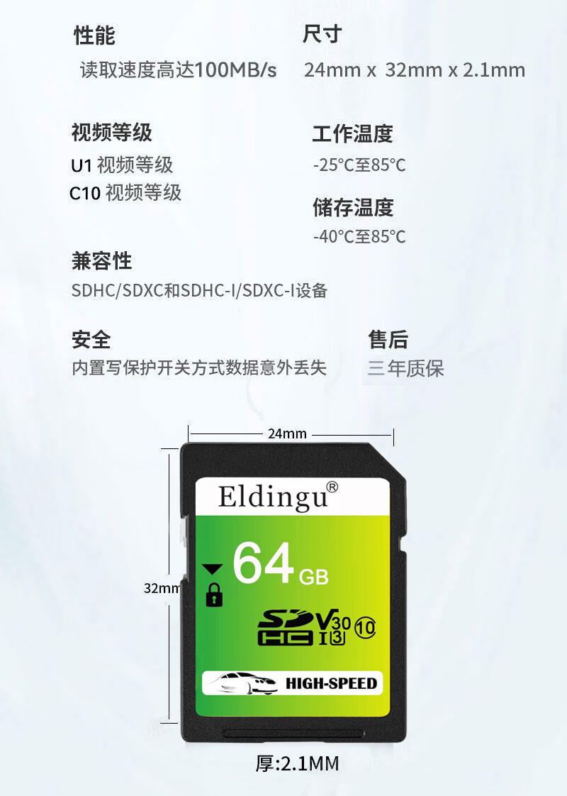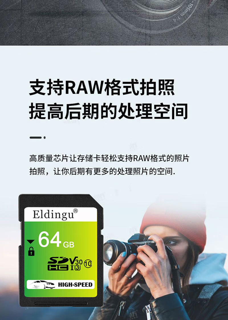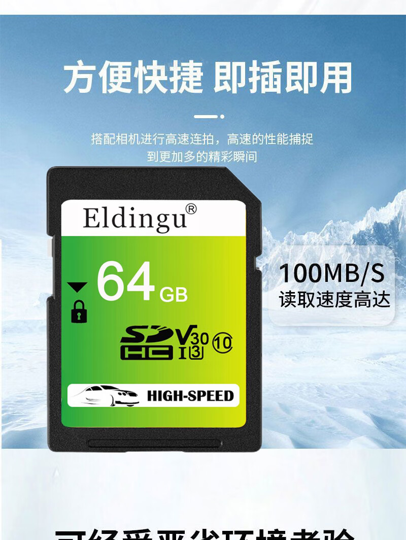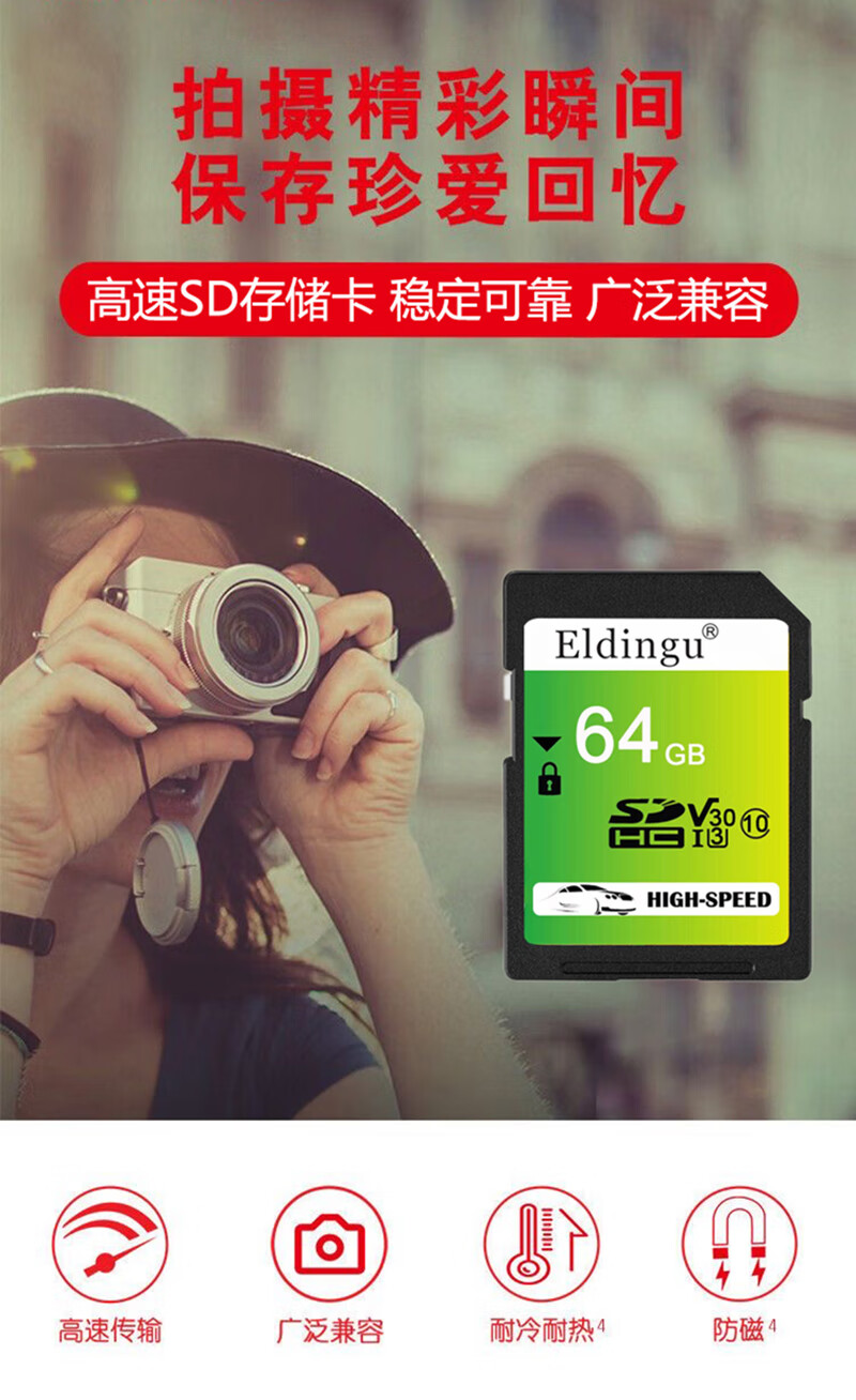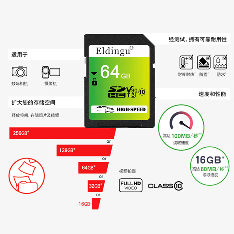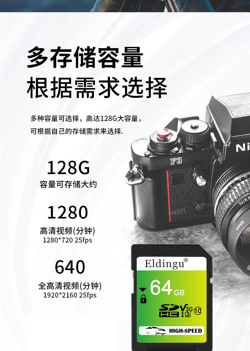 相机内存卡高速SD卡单反微单数码相机128G/64G/32G视频拍摄存储卡闪存卡 绿SD 64GB【高速稳定兼容】