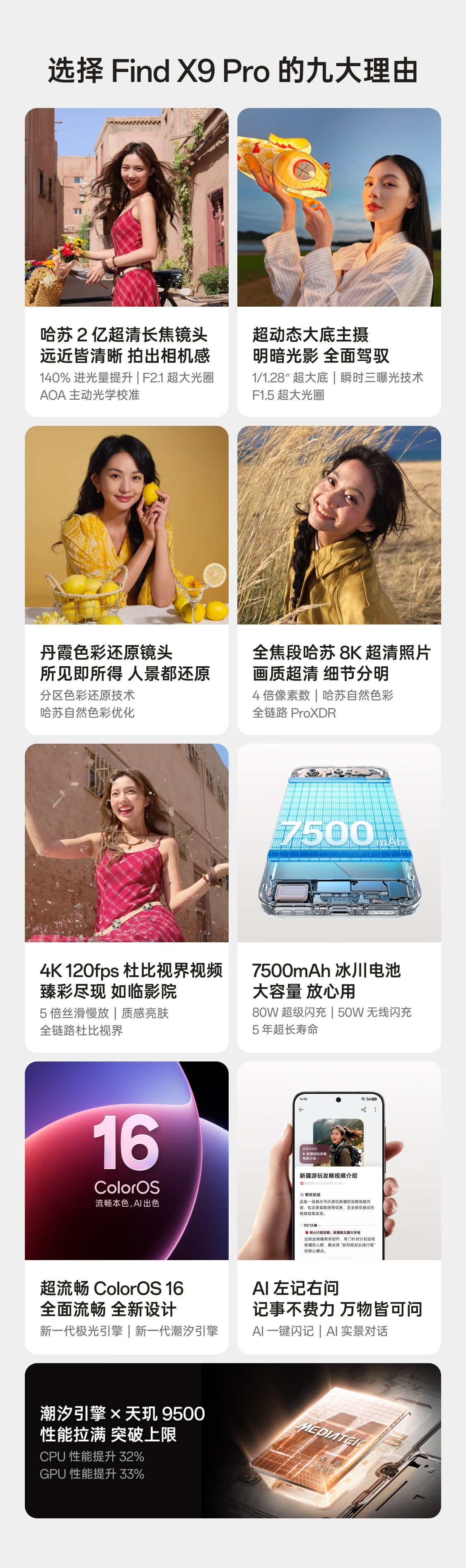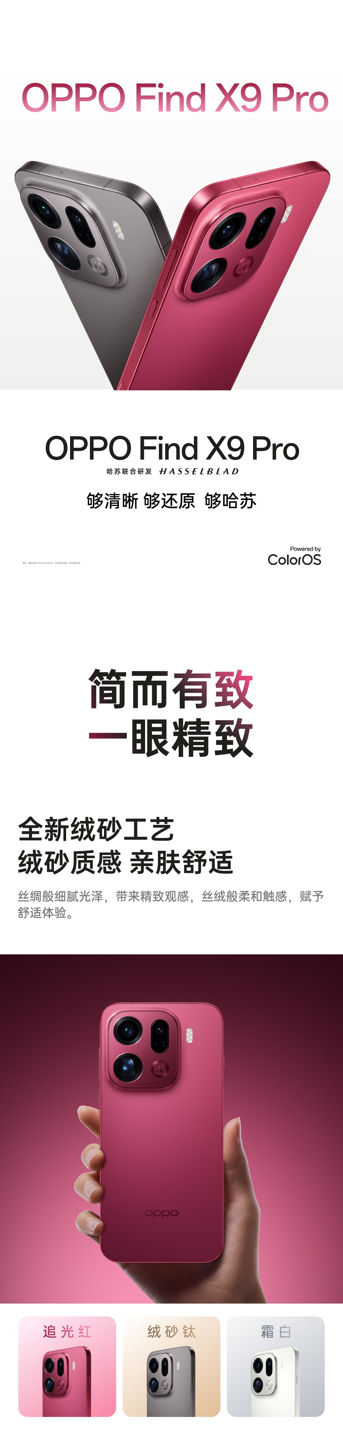 OPPO Find X9 16GB+512GB绒光钛 4K超清实况照片 7025mAh 天玑9500孙颖莎同款【自营秒送】
