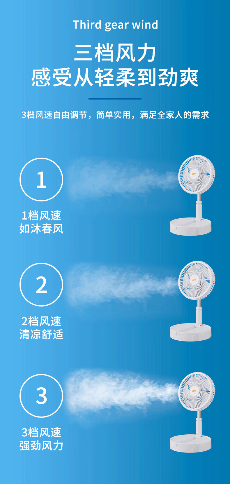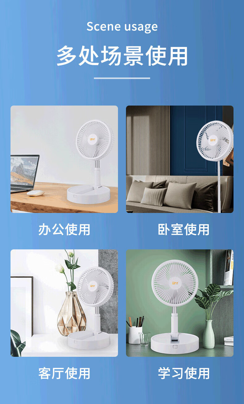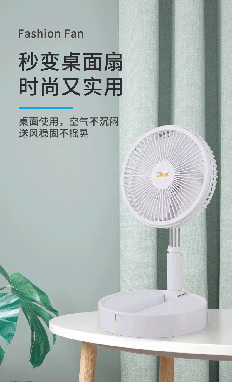 DEATKN德国高端折叠风扇便携式伸缩充电电风扇大风力出租屋台式立 服务