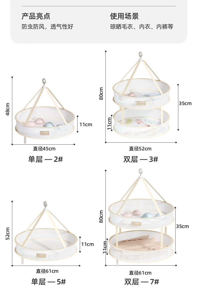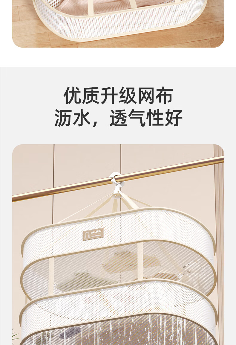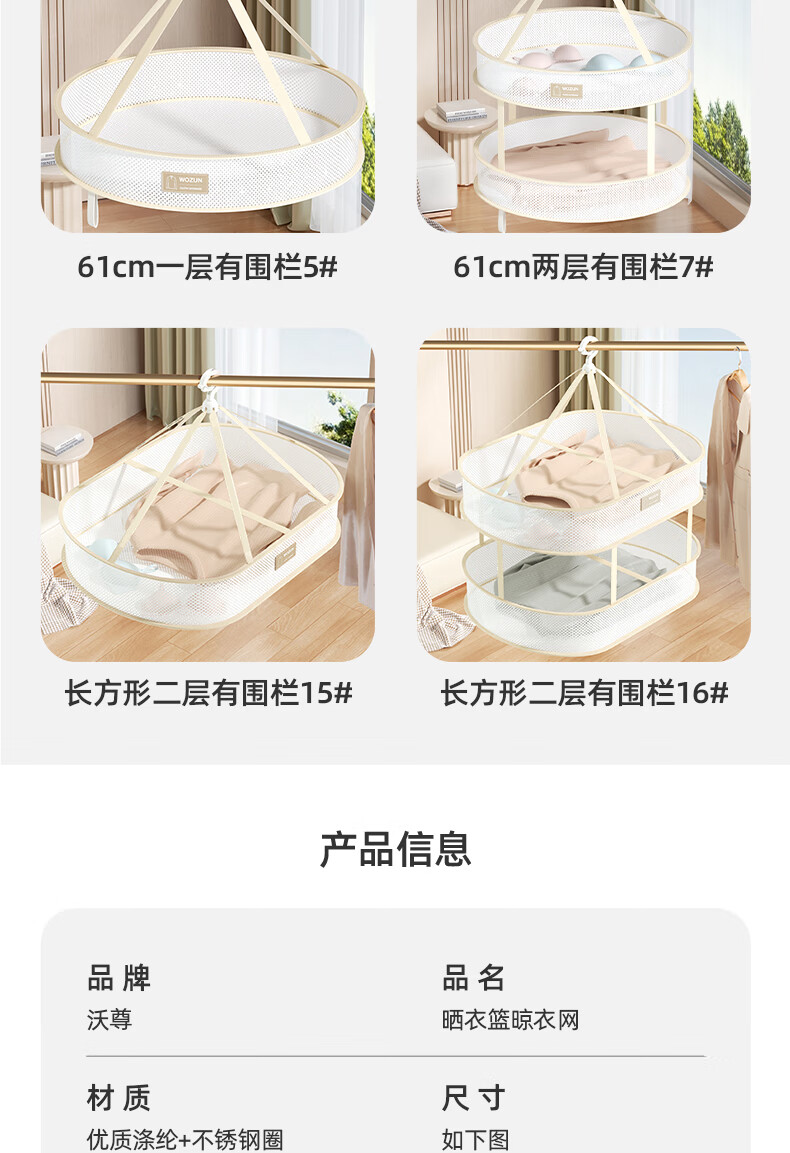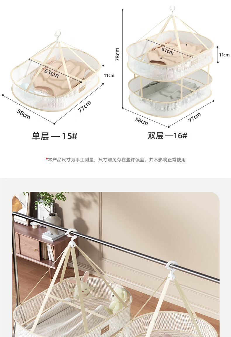 沃尊晾衣网毛衣羊毛衫专用平铺晾晒网晾晒衣服网兜袜子晾晒神器晒衣篮 【奶油白】双层款长方形带围栏
