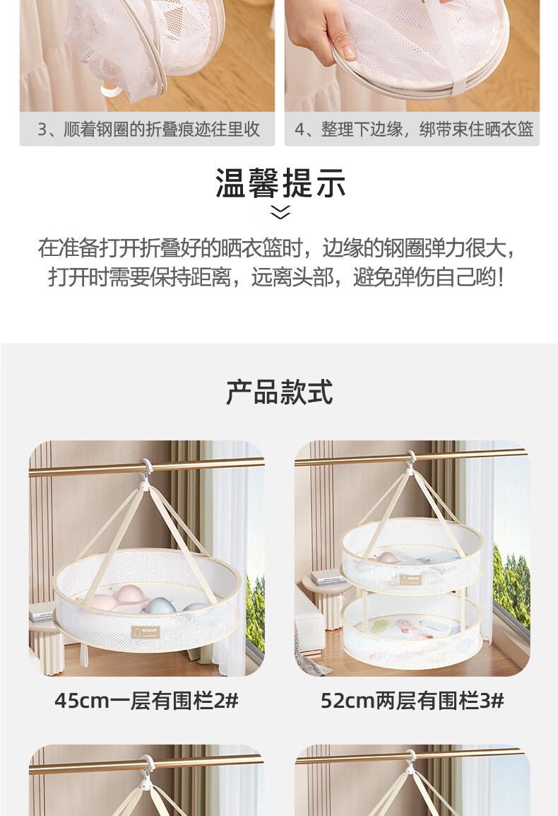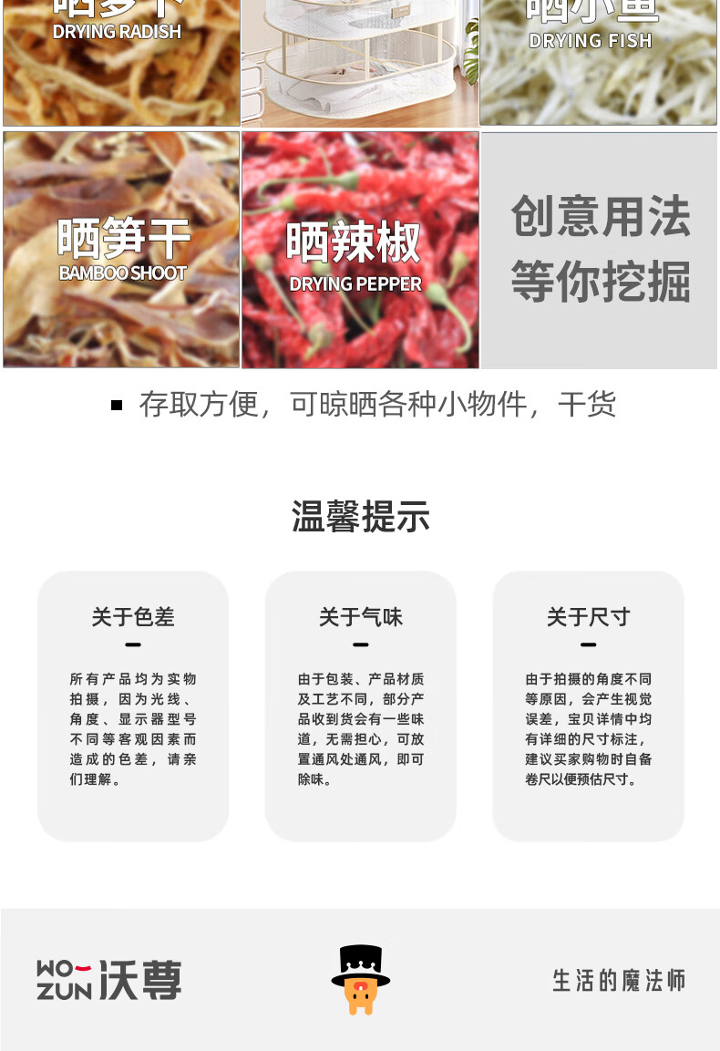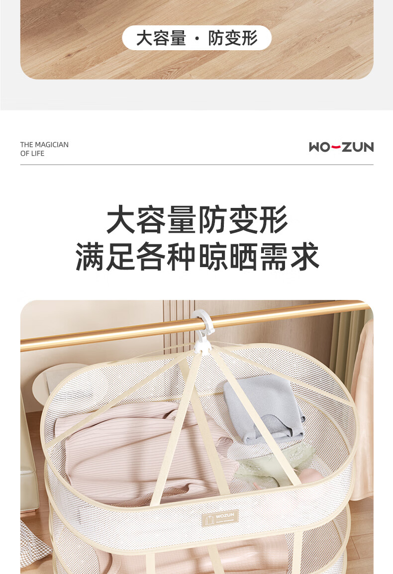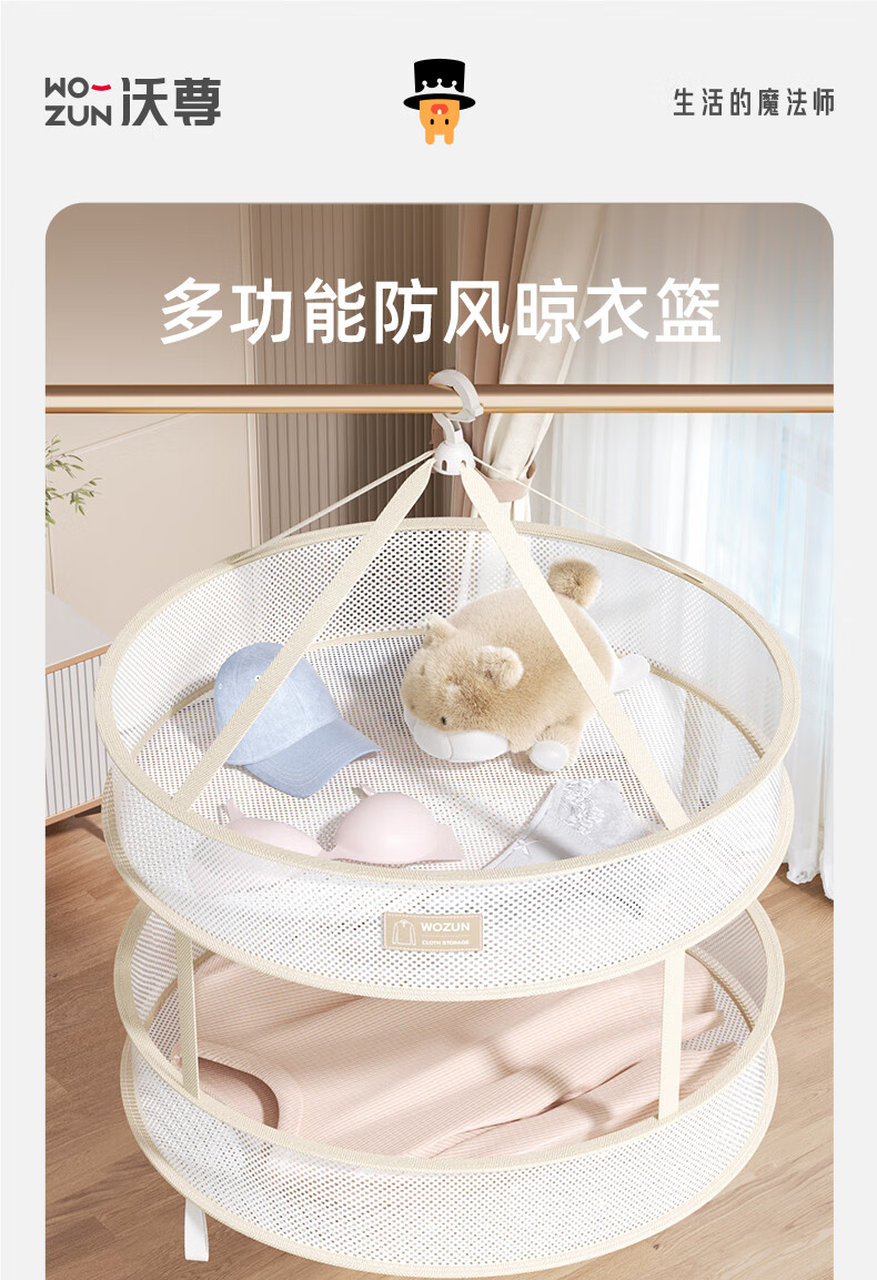 沃尊晾衣网毛衣羊毛衫专用平铺晾晒网晾晒衣服网兜袜子晾晒神器晒衣篮 【奶油白】双层款长方形带围栏