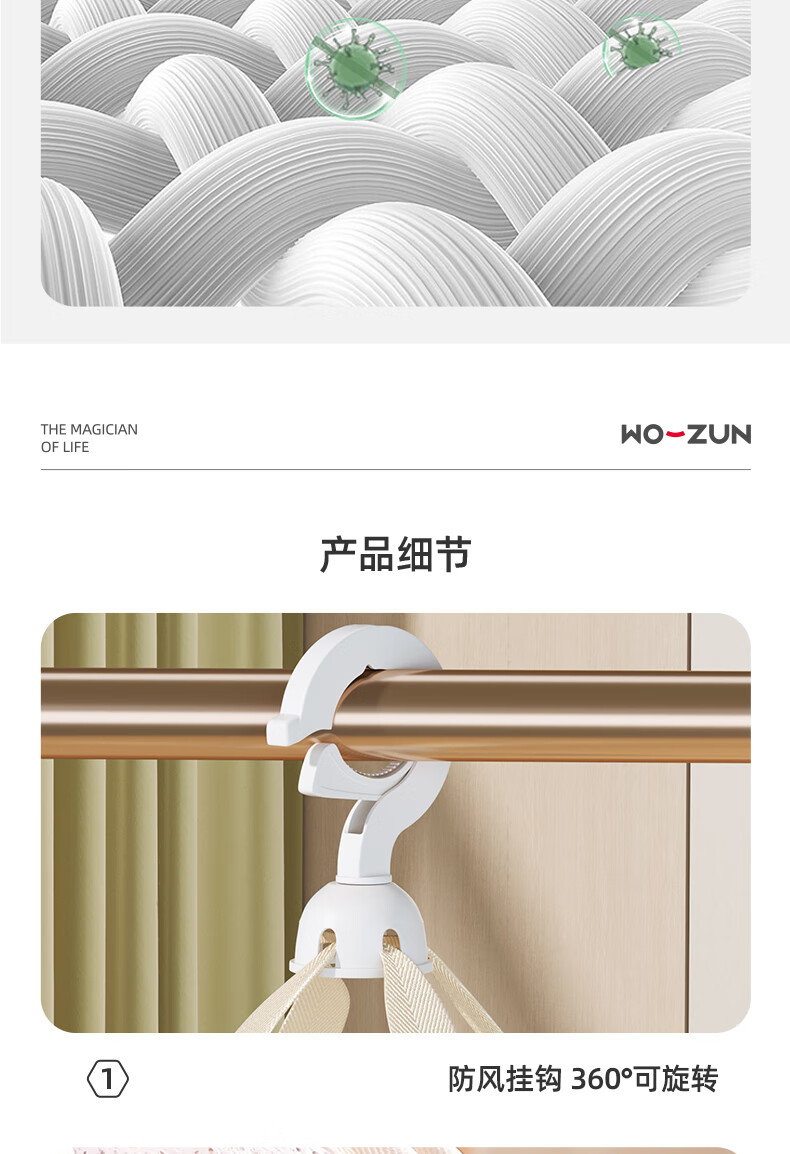 WCZ德国可伸缩加长衣架晒被子晾衣架宿舍阳台多功能浴巾专用大号衣撑 米白色可伸缩调节 52cm70cm 2支