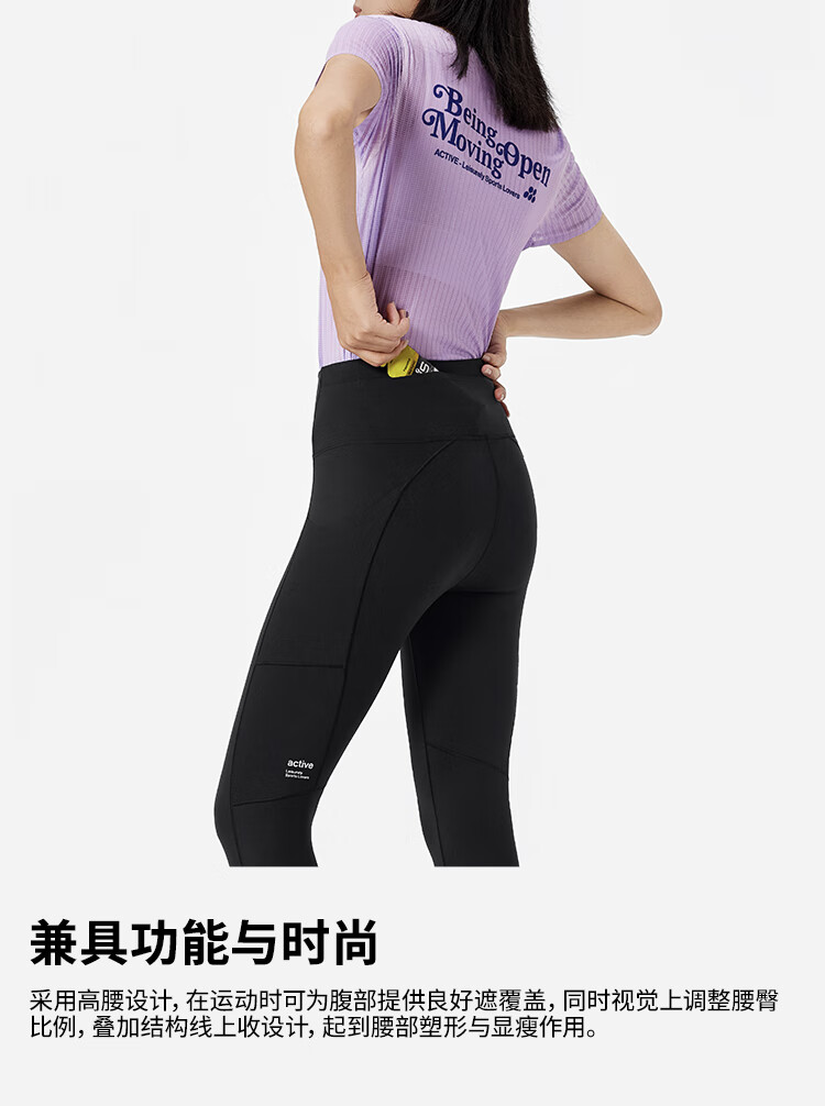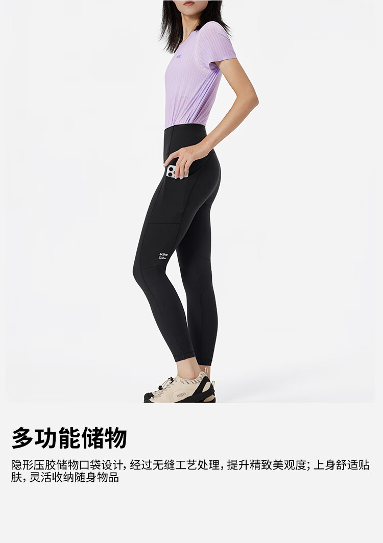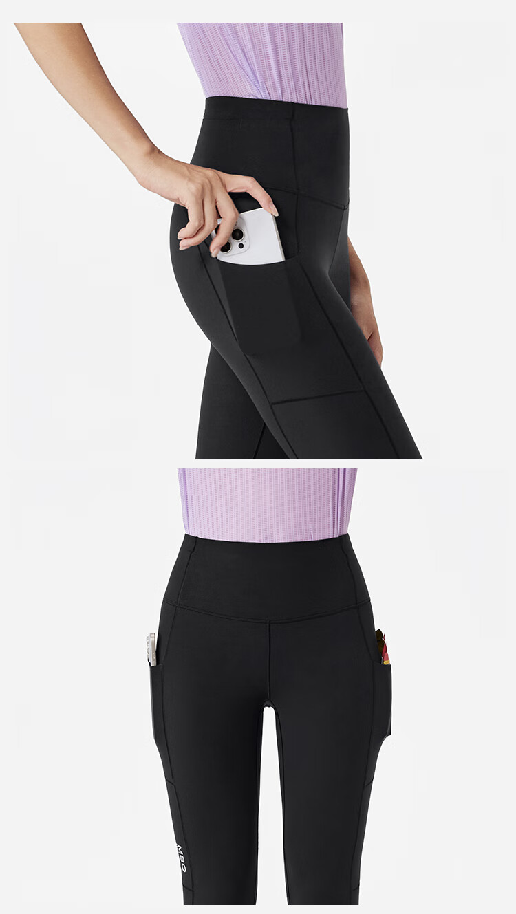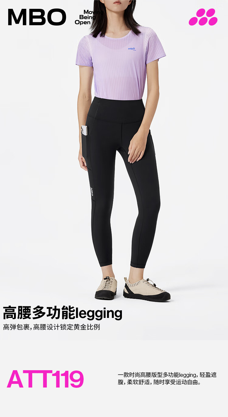 MBO女子高腰多功能legging运动长裤 弹力不紧绷 便捷储物口袋 ATT119 黑色 XS