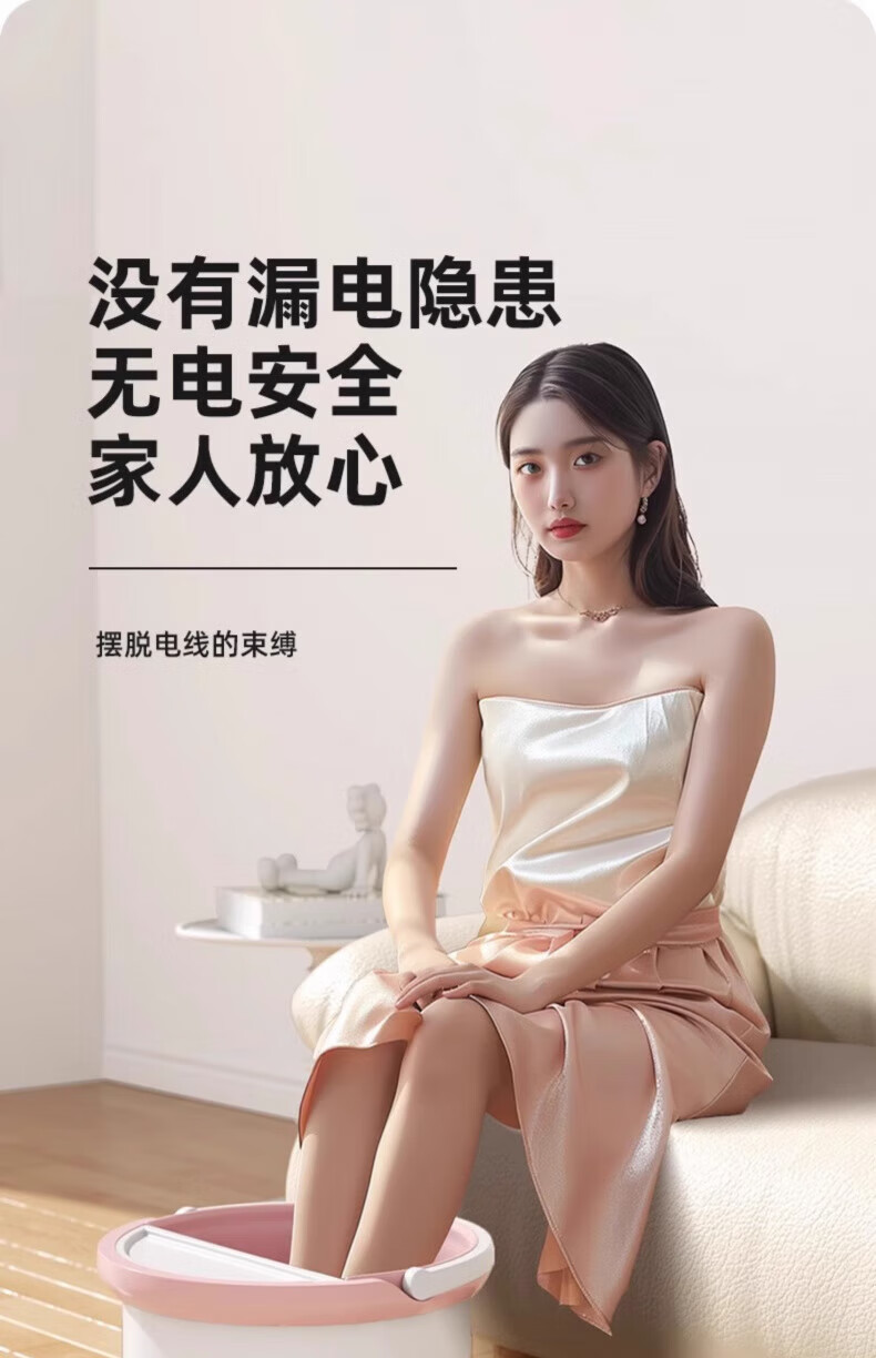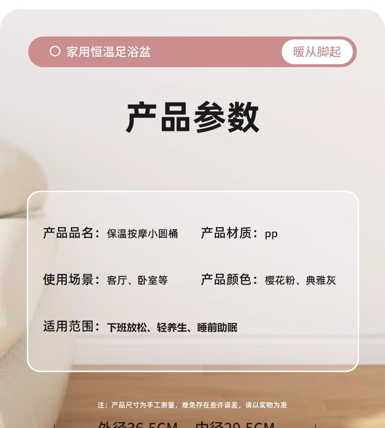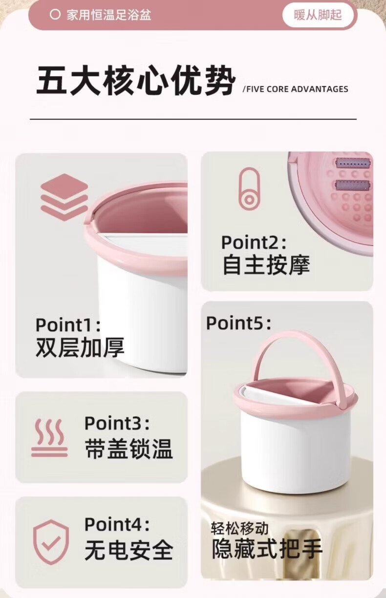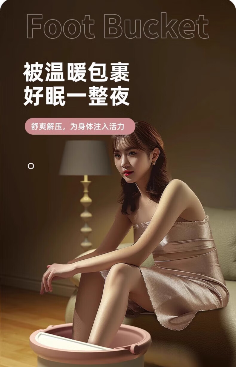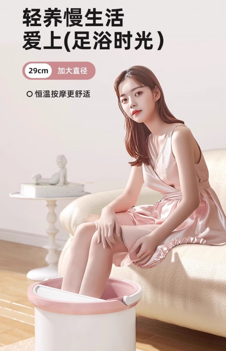DEATKN德国产后月子泡脚桶加厚保温过小腿家用足浴桶按摩养生神器2024年 超保温公主粉三层夹棉加厚 1cm