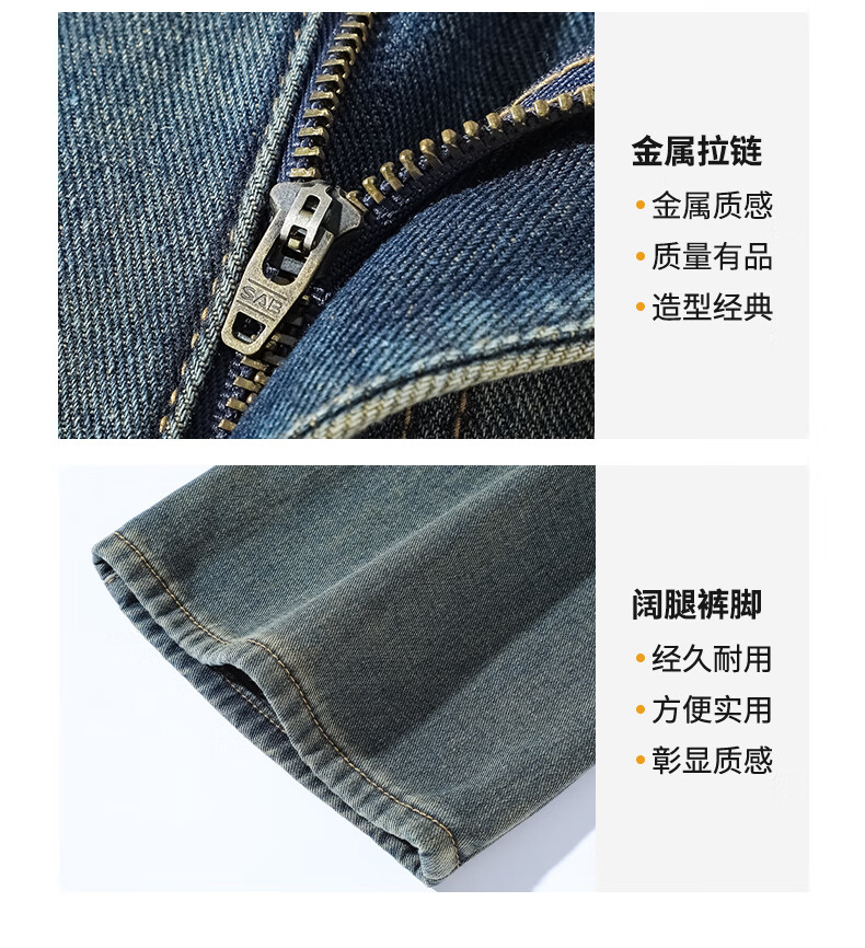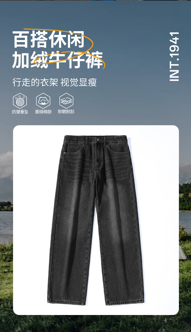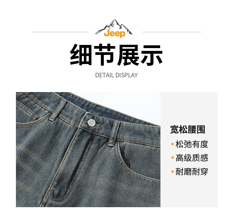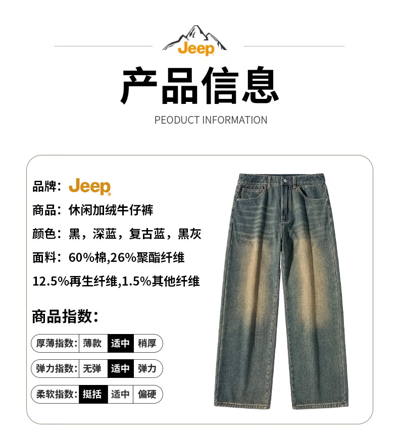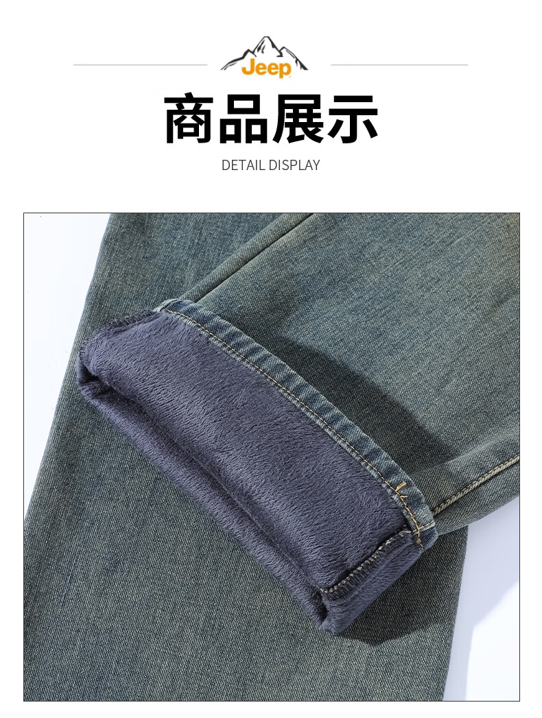吉普(JEEP)牛仔裤男秋冬季高端轻奢商务加绒休闲裤新款复古潮牌水洗直筒男裤