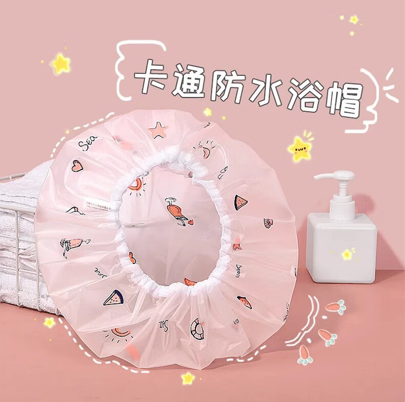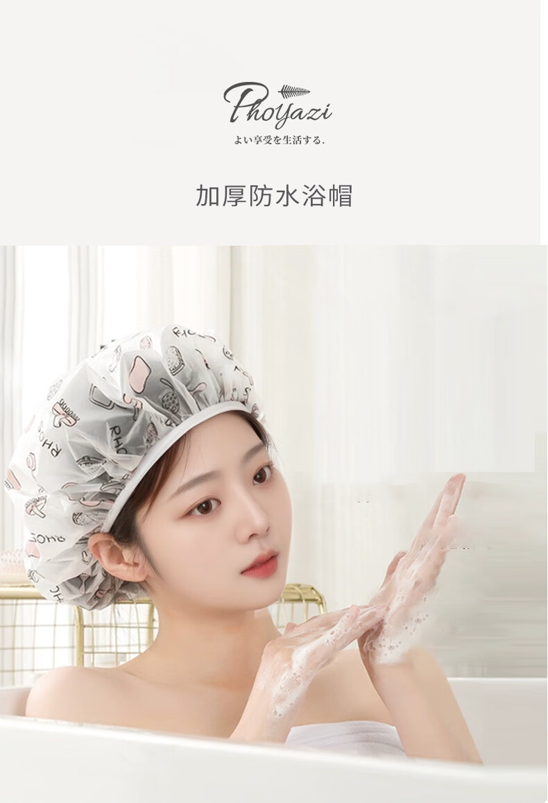 AILUKI日本手绘浴帽防水洗澡沐浴帽子家用淋浴头套厨房防油烟女士款加厚 水滴款+几何款