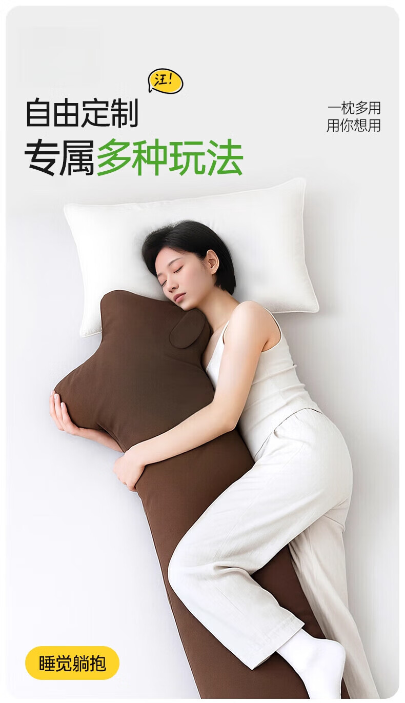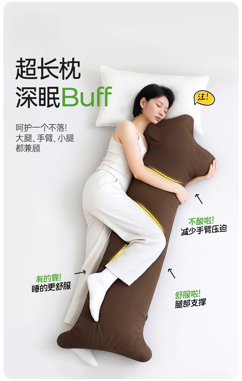 DEATKN德国高端长条抱枕孕妇枕高个专用侧睡神器 浅卡其[四季款/SoundSleep助眠舒 150cm*171cm 枕套 大号身高以上