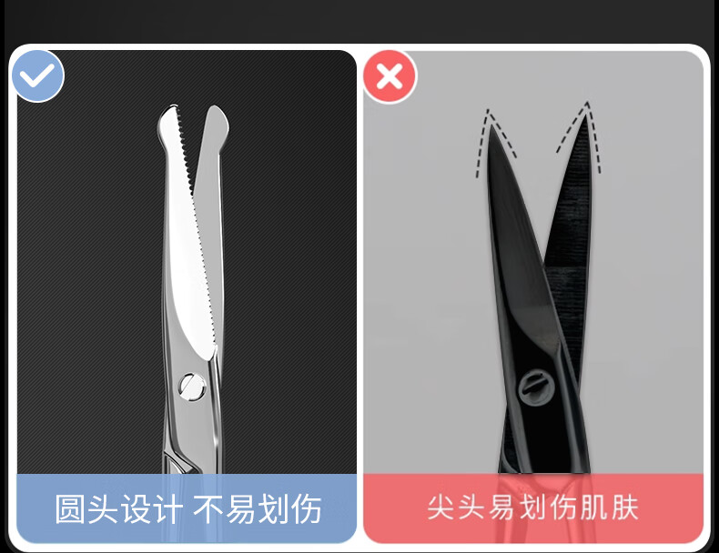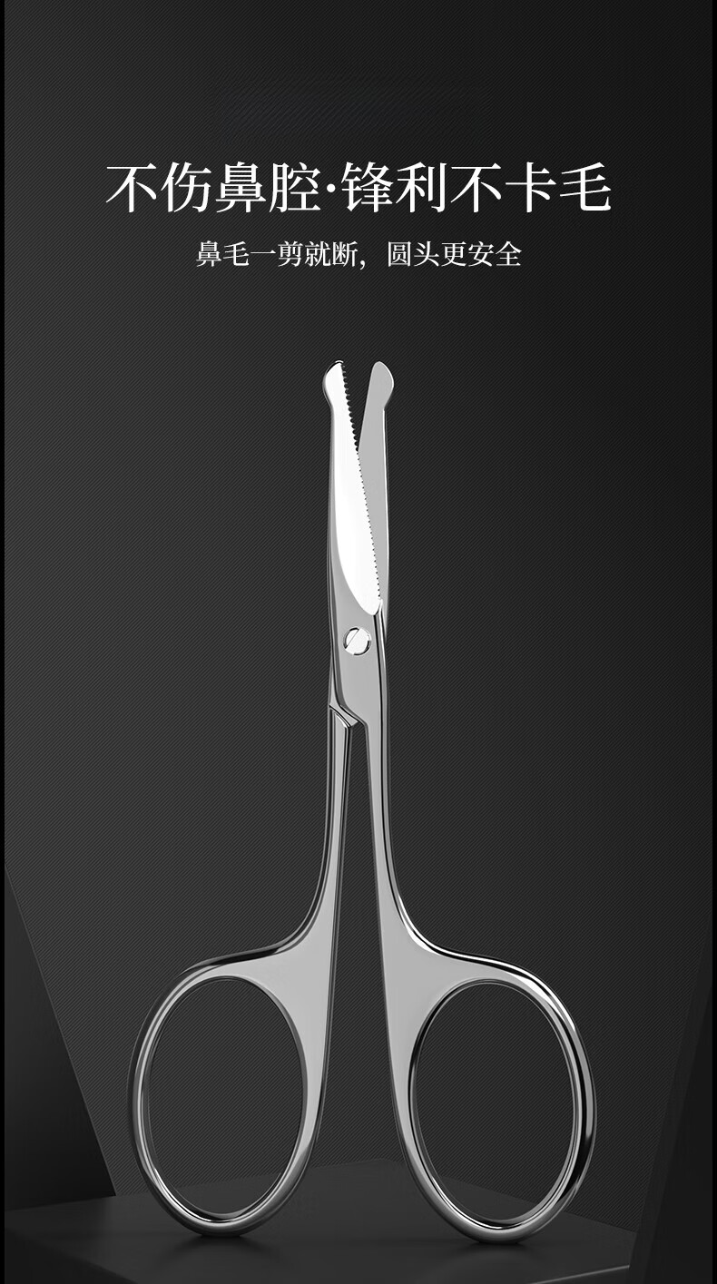 AILUKI日本鼻毛修剪器男士鼻毛剪刀圆头手动鼻孔安全剃刮去神器女用 银-圆头鼻毛剪+带镜收纳盒