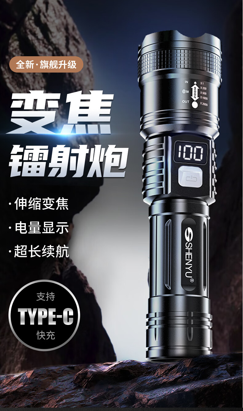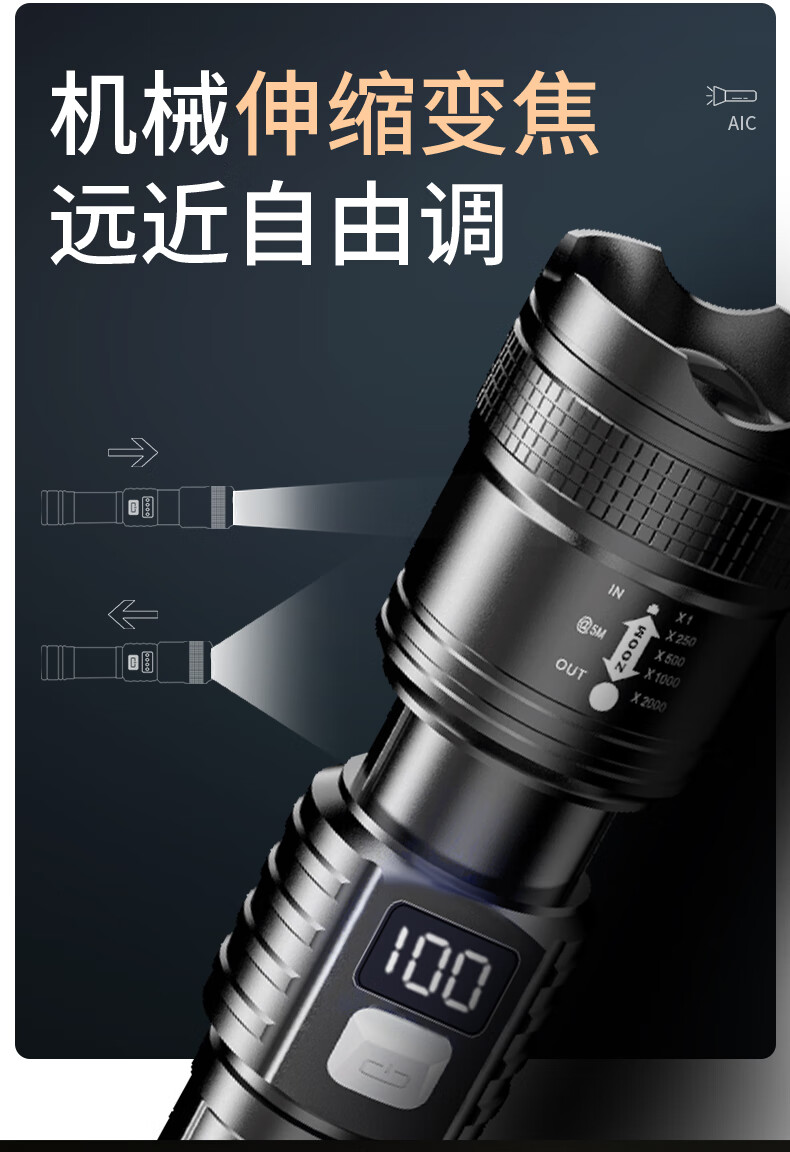 Aic手电筒强光充电式超亮远射便携变焦登山户外家用耐用小型2025新款 【豪华版】内置锂电-持久续航
