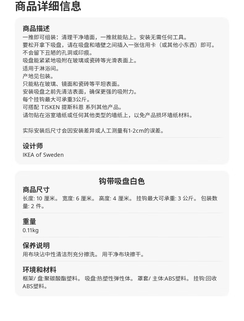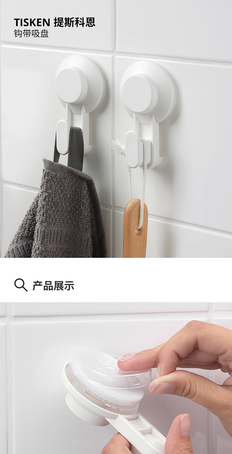 宜家(IKEA)顺手买一件TISKEN 提斯科恩 钩带吸盘 白色 2件 钩带吸盘白色