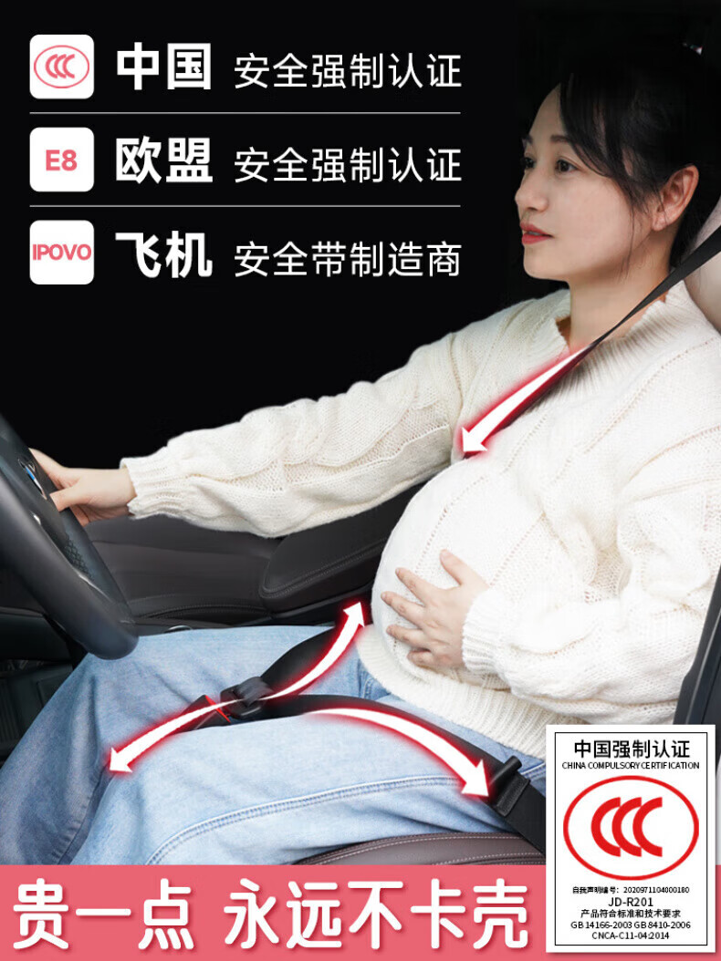 DEATKN德国高端孕妇安全带3C认证汽车专用防勒肚车载孕期主副驾驶开 黑色
