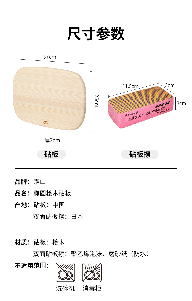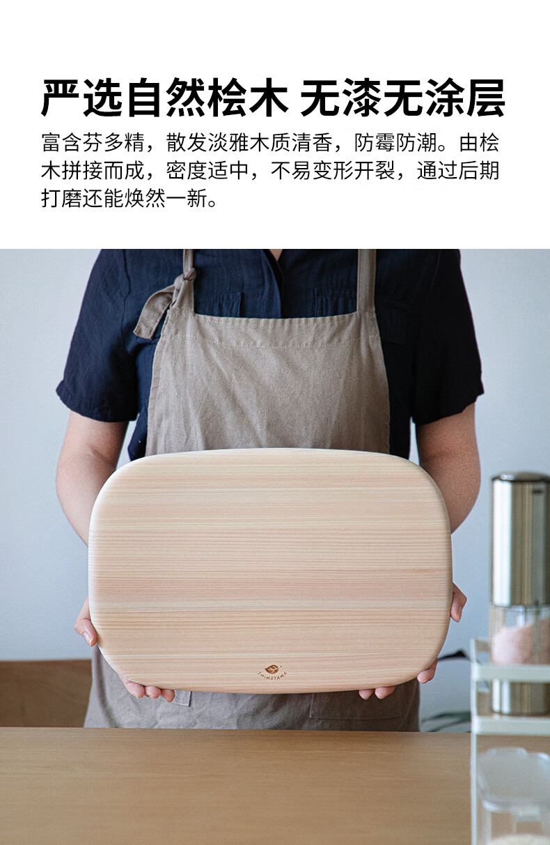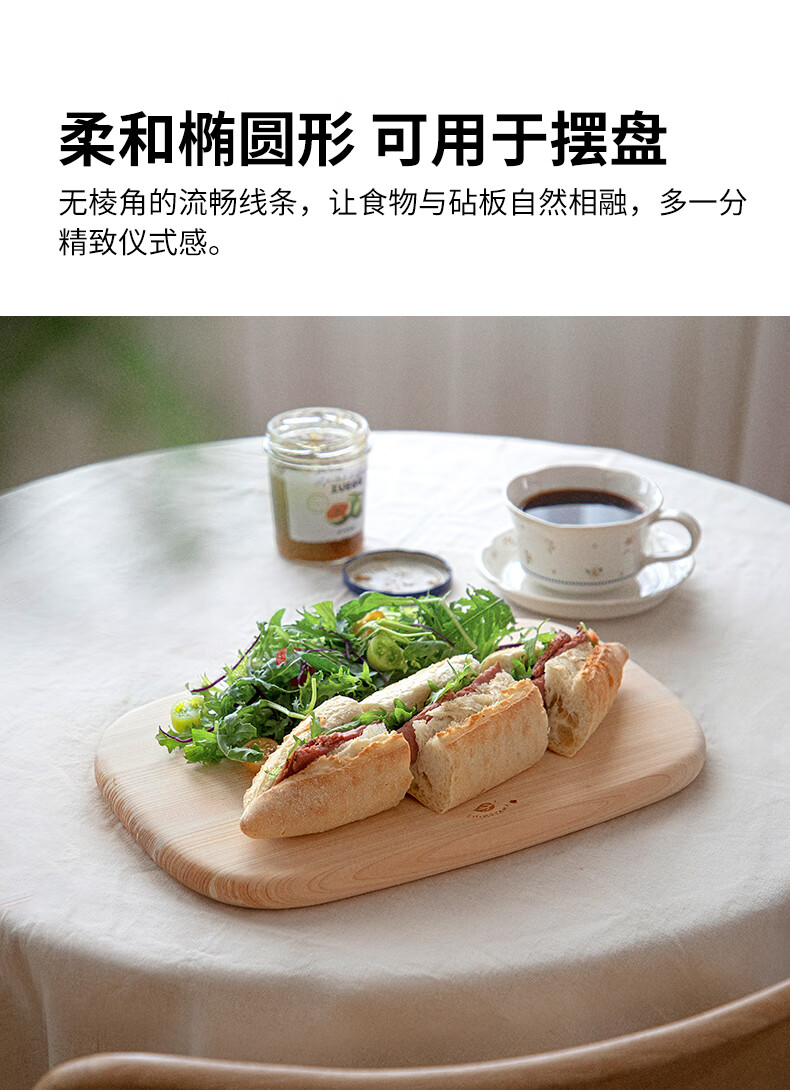 霜山桧木砧板椭圆形家用实木无涂层双面菜板加厚案板面包水果托盘 【无漆无涂层】长37*宽25*厚2cm