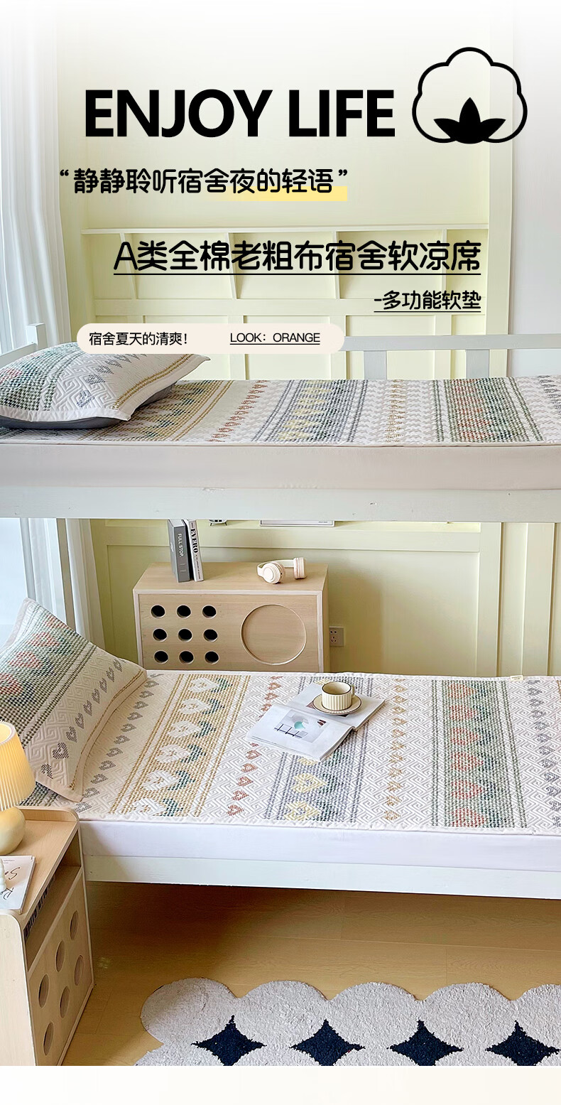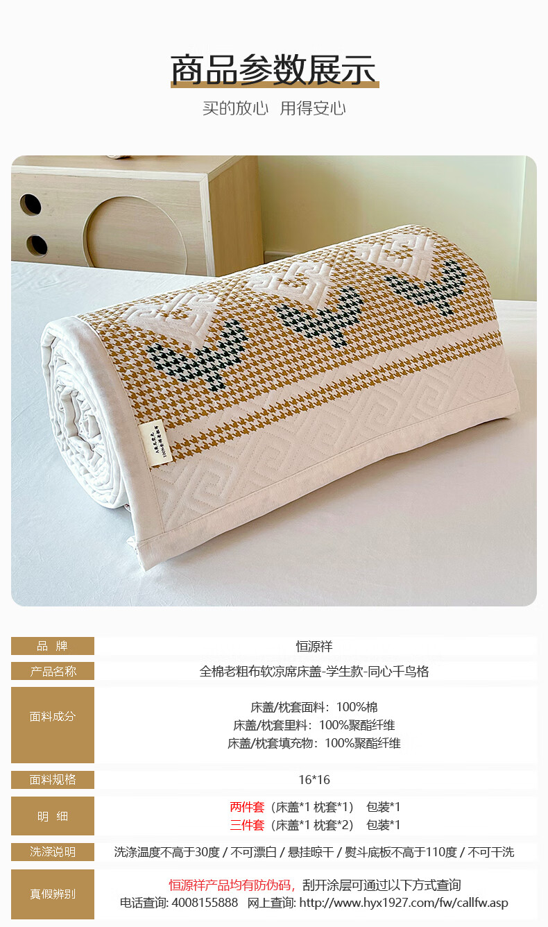 恒源祥A类纯棉老粗布床盖单件100%全棉学生宿舍加厚被单四季通用榻榻米 流光灰 180cm*200cm 【床盖*1枕套*2】