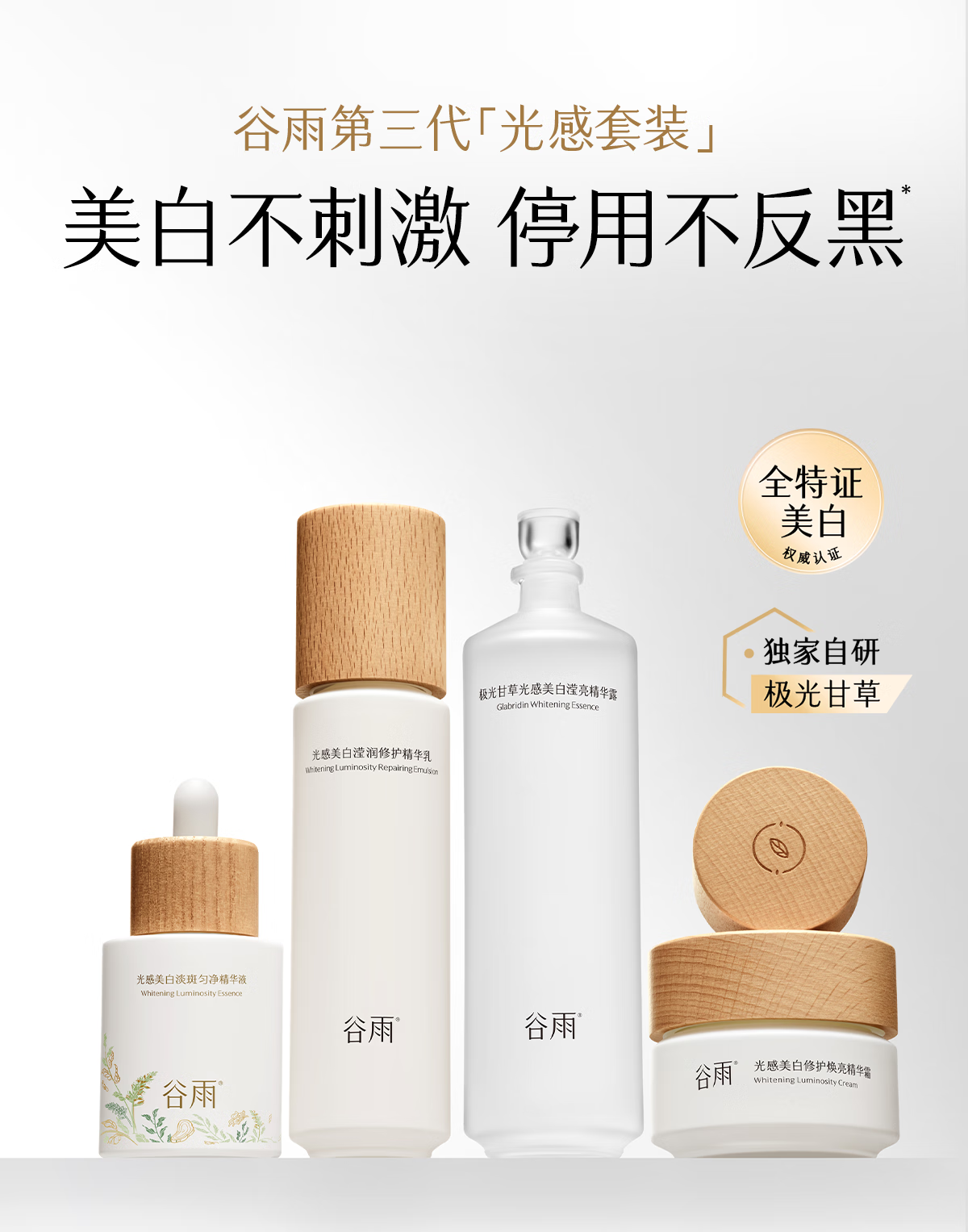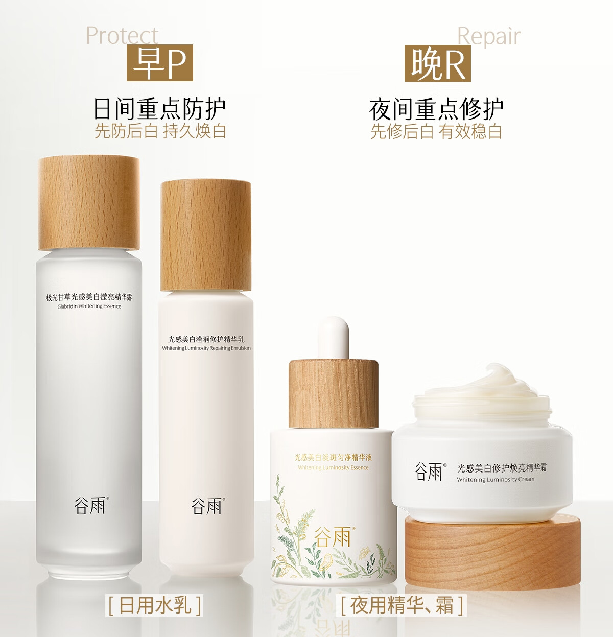谷雨第三代光感水乳霜套装 美白淡斑修护保湿护肤品生日礼物
