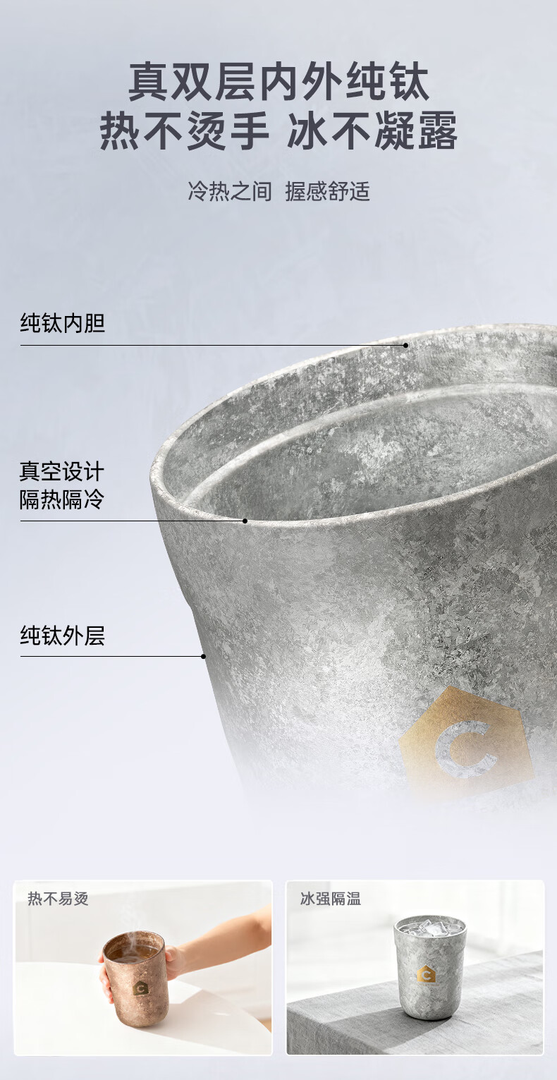 霸王茶姬(CHAGEE)纯钛杯0涂层银色咖啡杯京东自营双层隔热养生泡茶水杯子伴手礼物