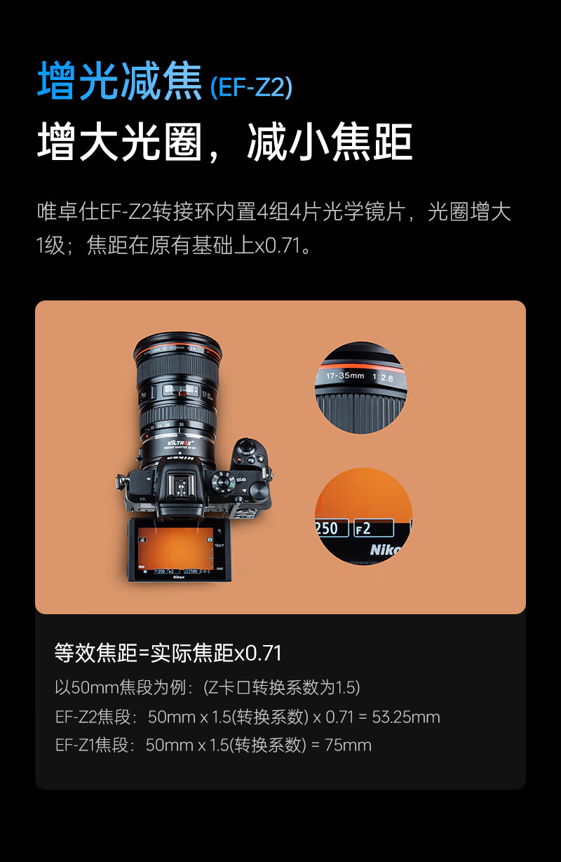唯卓仕EF-Z转接环适用于佳能EF单反镜头转尼康Z卡口微单相机转接环Z6 Z50 Z7 ZFC Z30机身适配器自动对焦 EF-Z