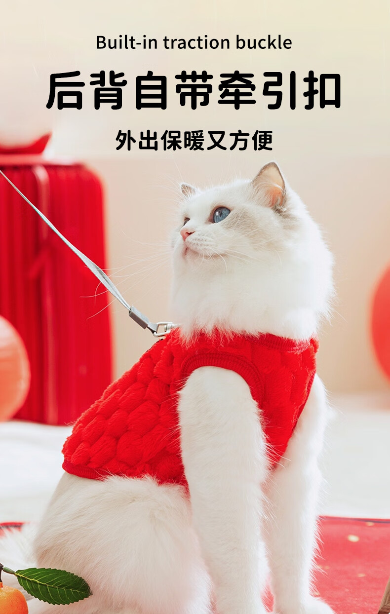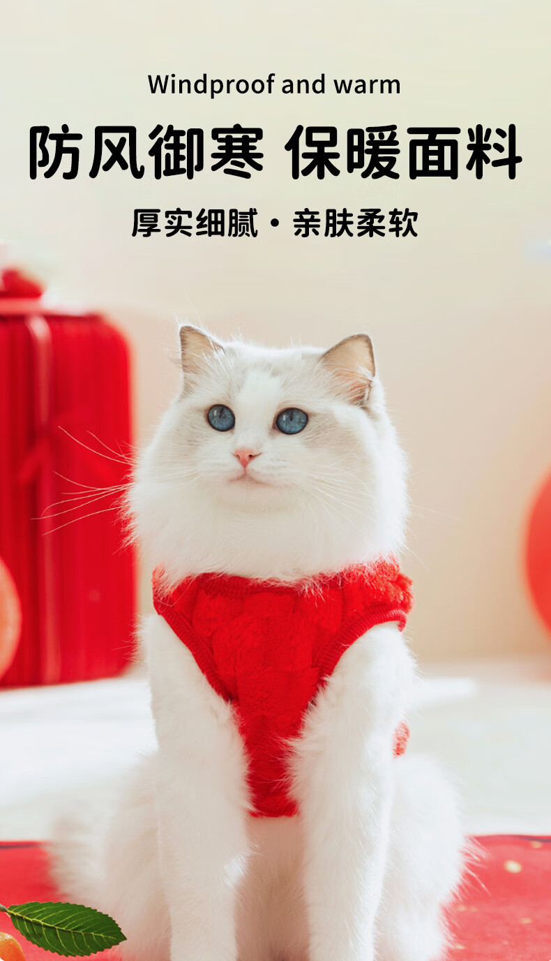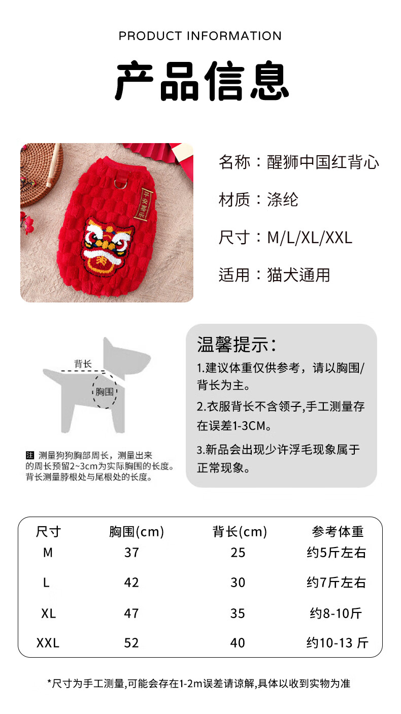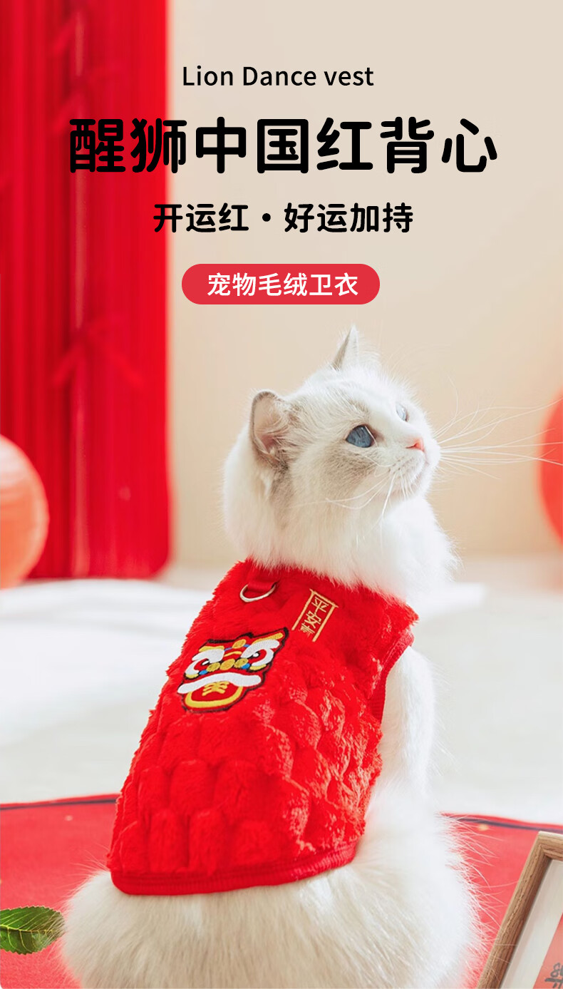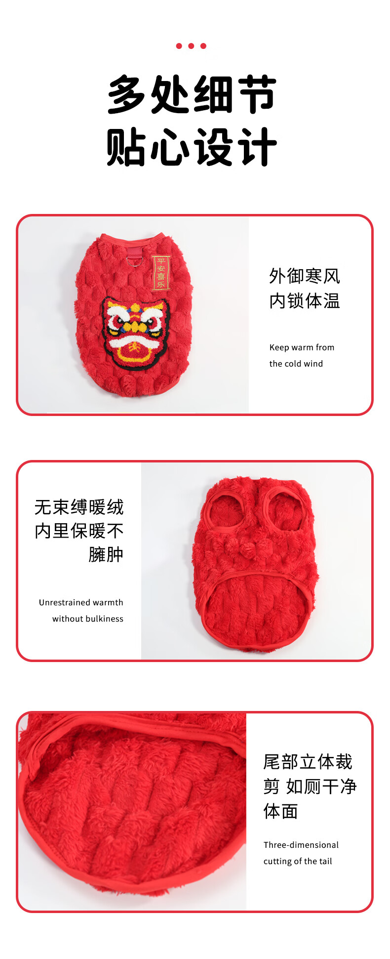 萌嘟星宠宠物衣服猫咪狗狗拜年服冬季保暖防掉毛加绒过年圣诞醒狮中国红