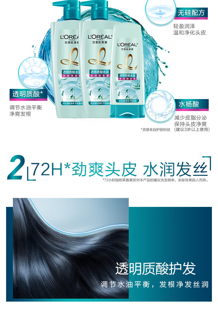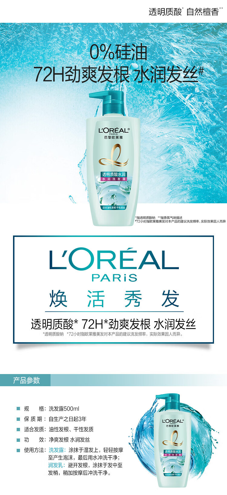 欧莱雅透明质酸水润洗发露500ml【临期清仓】