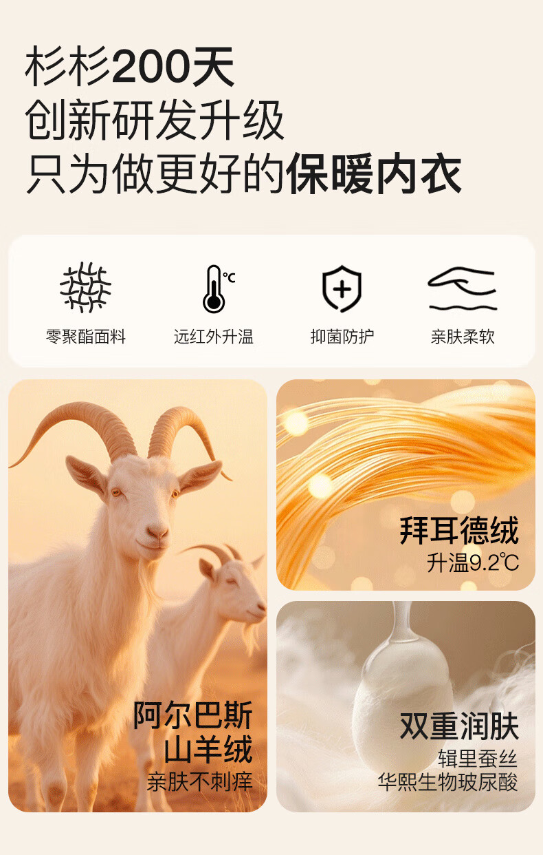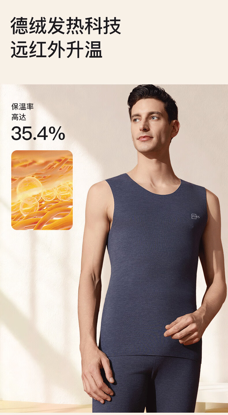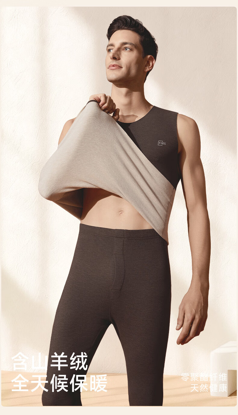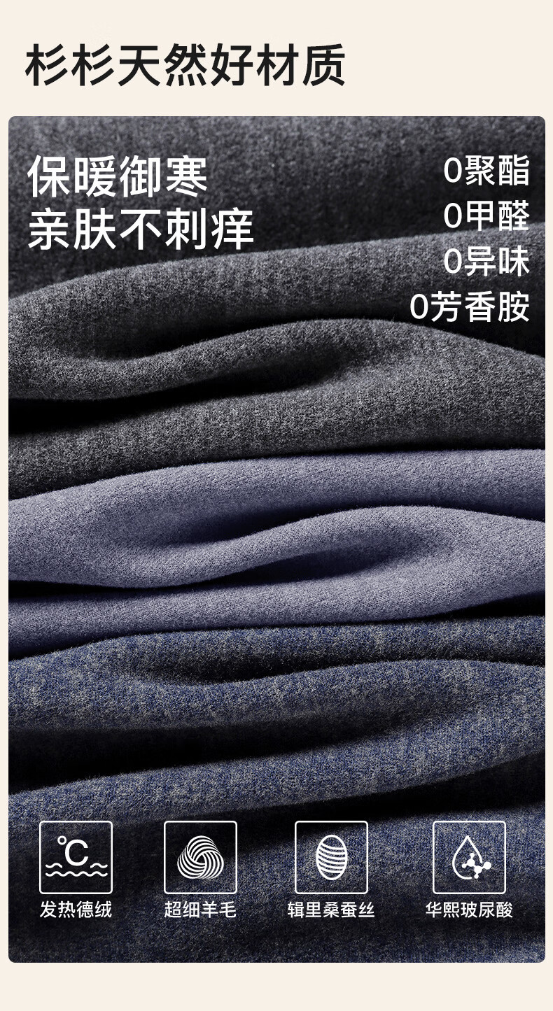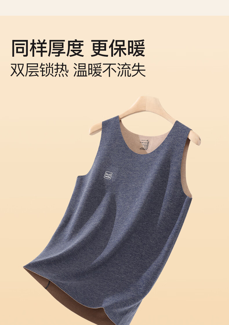杉杉【0聚酯德绒发热】25年新品男士保暖背心男秋冬加绒加厚羊绒蚕丝