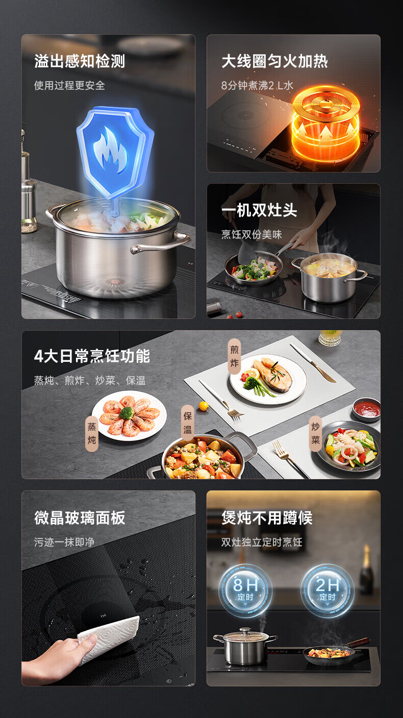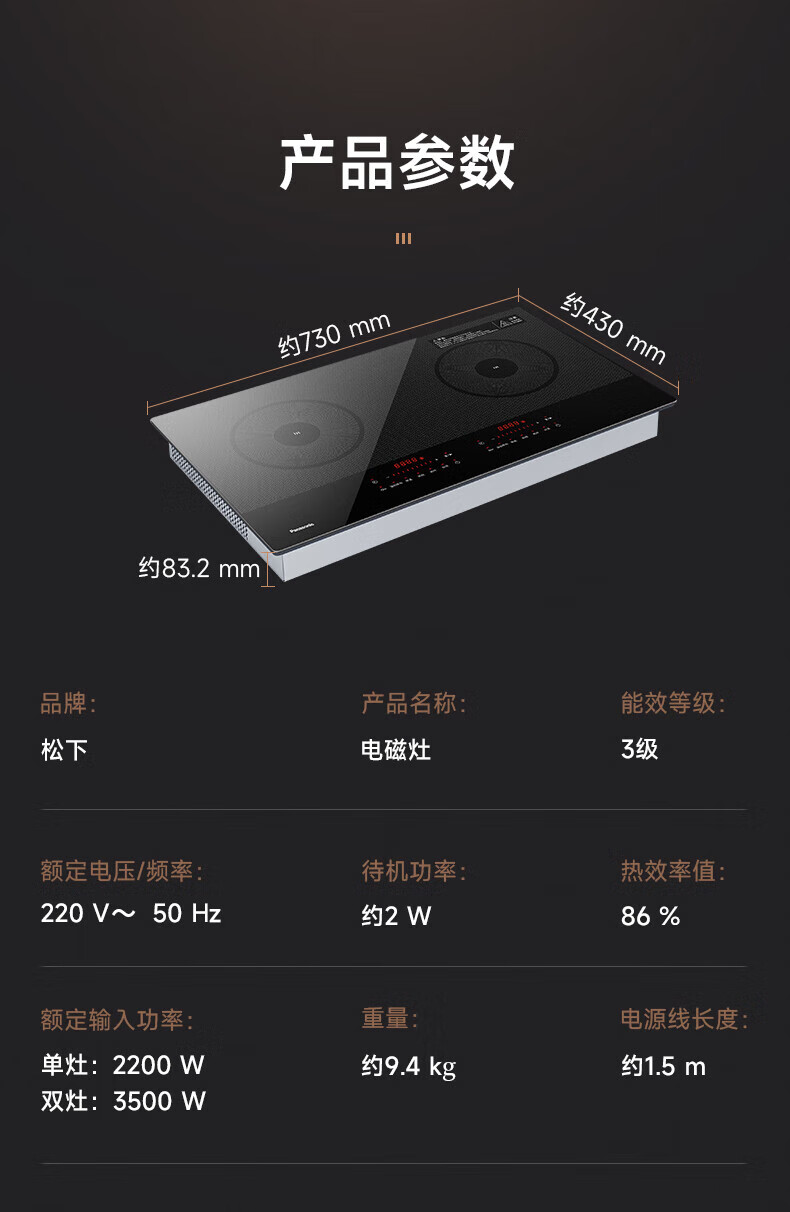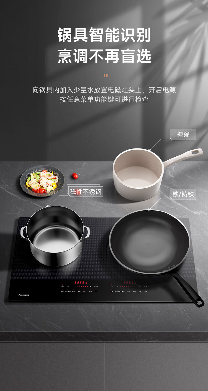 松下(Panasonic)【国家补贴】双灶电磁炉家用多功能嵌入式电磁灶大功率猛火速热独立定时台嵌两用 溢出感知KY-EC21 KY-EC21【溢出感知+9档火力+微晶玻璃面板】
