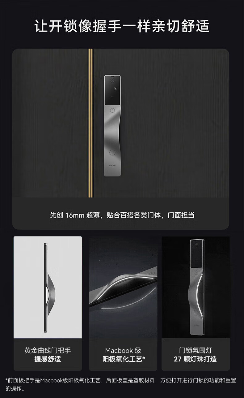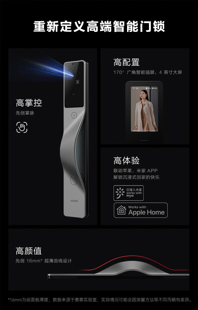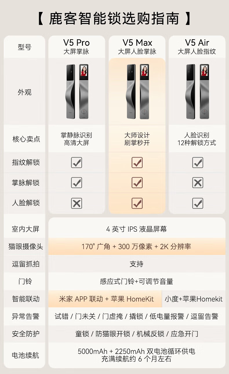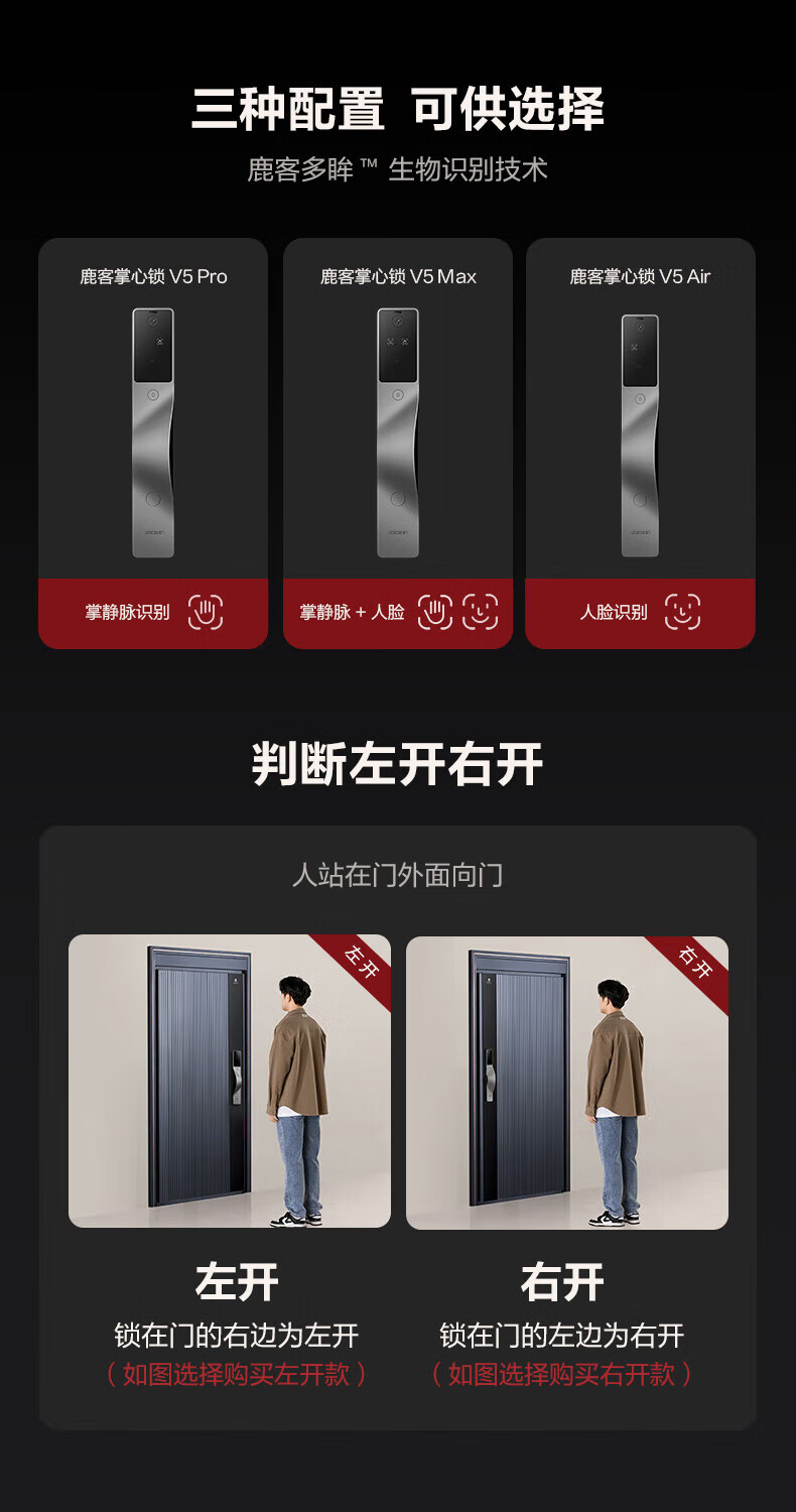 鹿客(lockin)掌心锁掌静脉智能门锁猫眼大屏指纹锁密码锁电子锁V5 Pro左开
