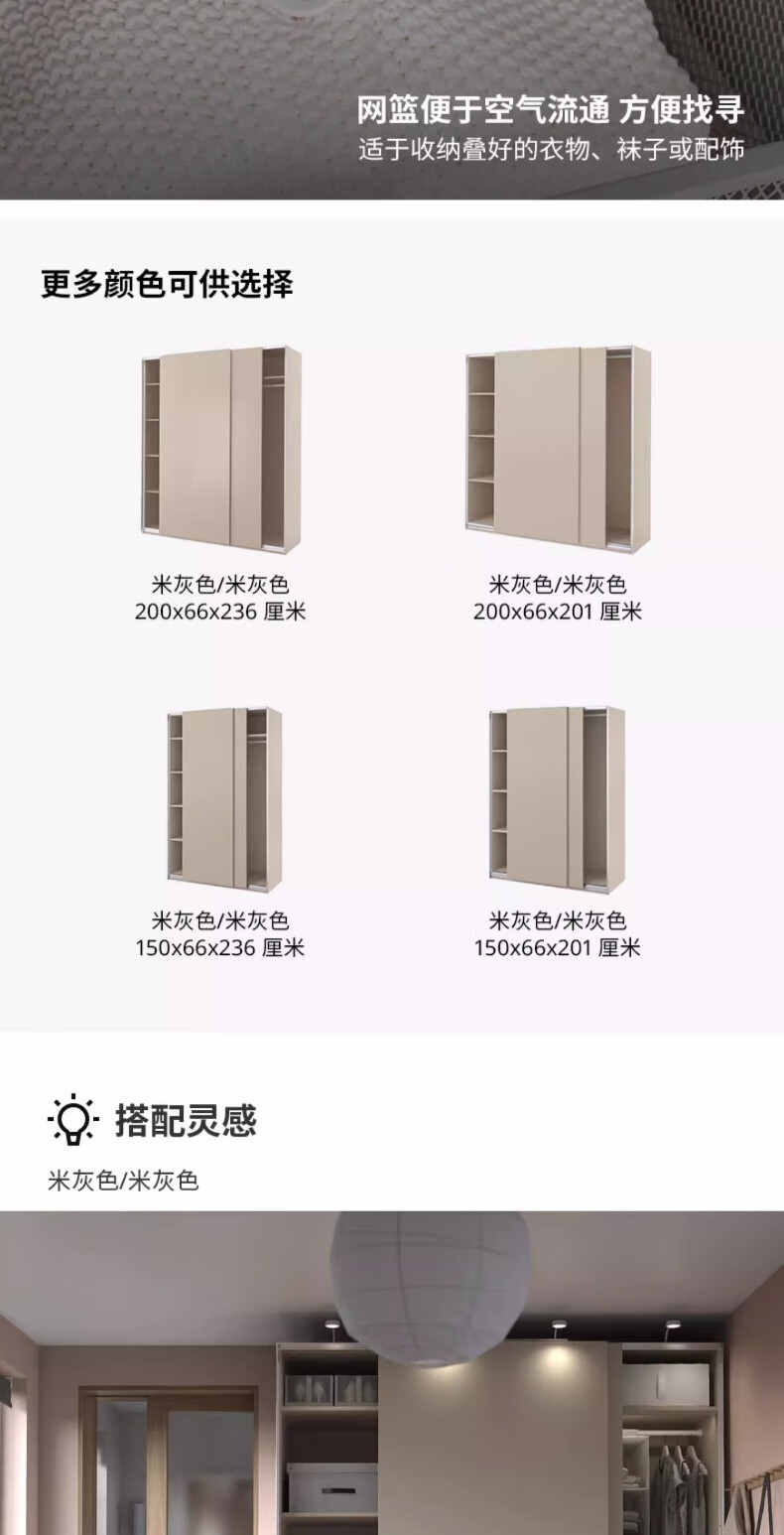 宜家(IKEA)PAX帕克思衣柜储物柜收纳柜衣橱储物柜小户型家用 衣柜150x66x236cm