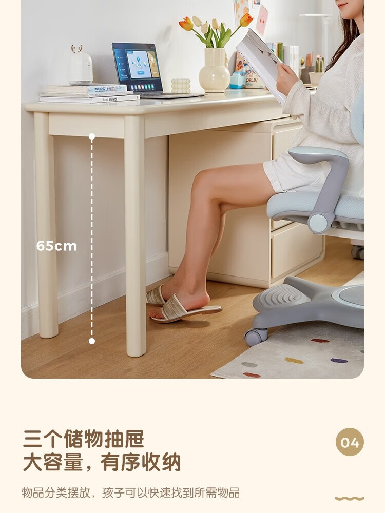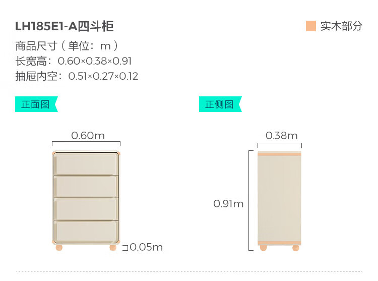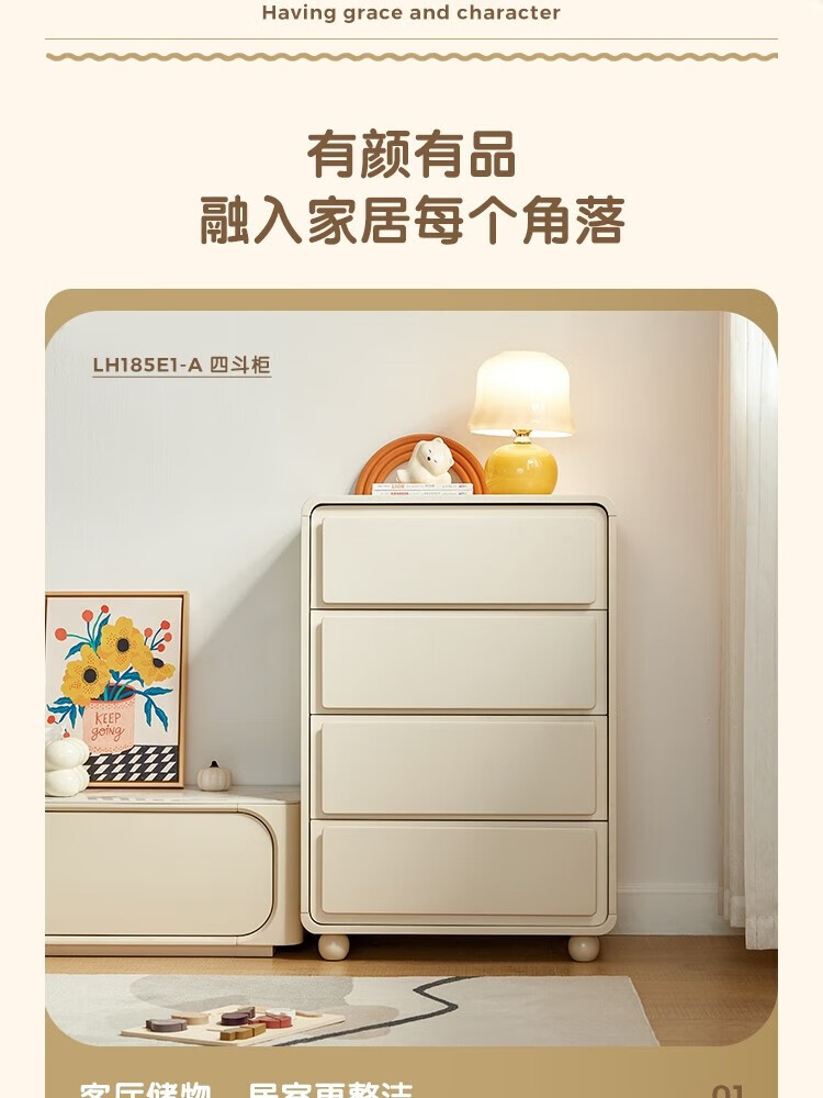 LINSY KIDS斗柜学生家用学习桌小户型写字书桌椅床收纳储物头柜子 【单柜】奶油风四斗柜