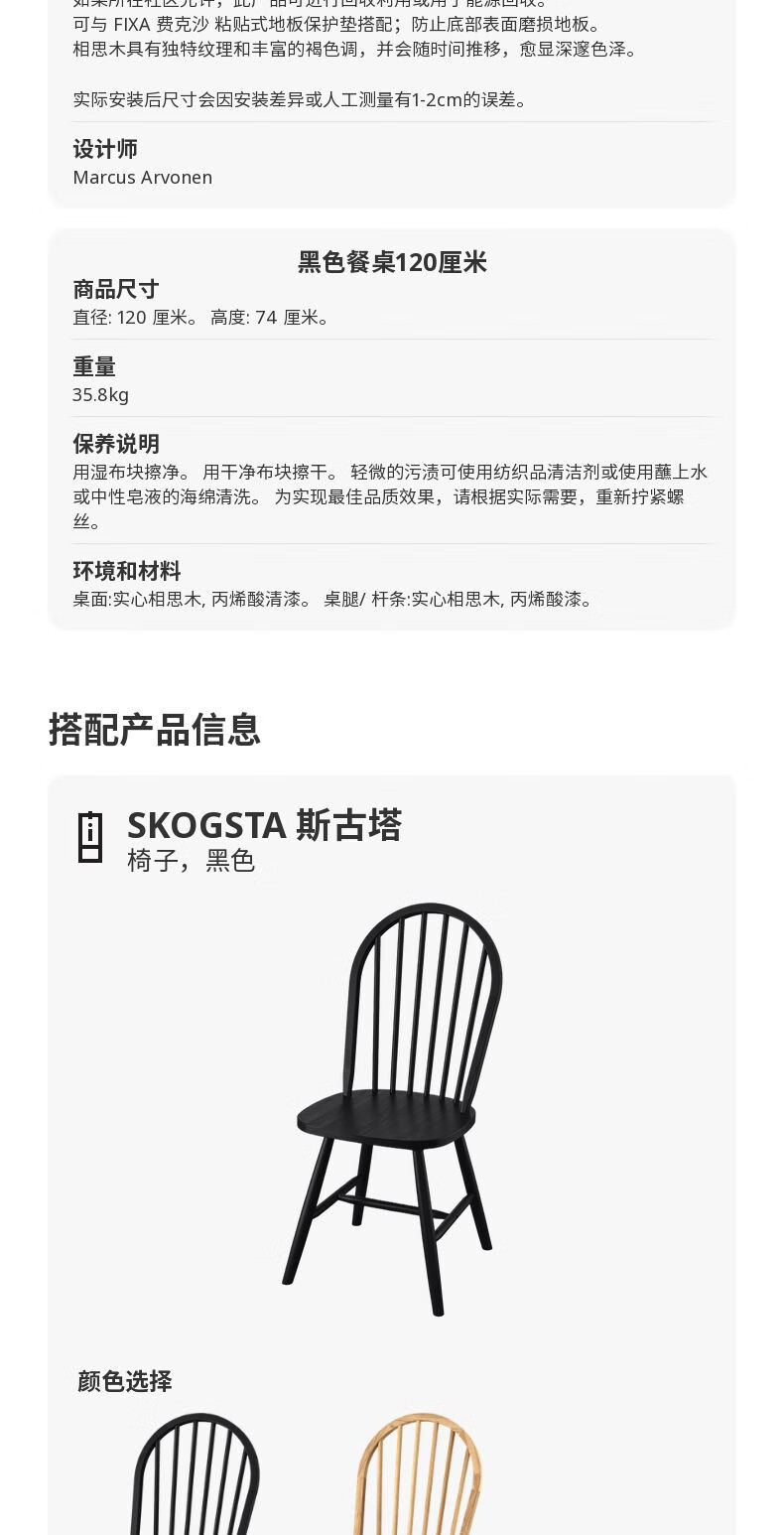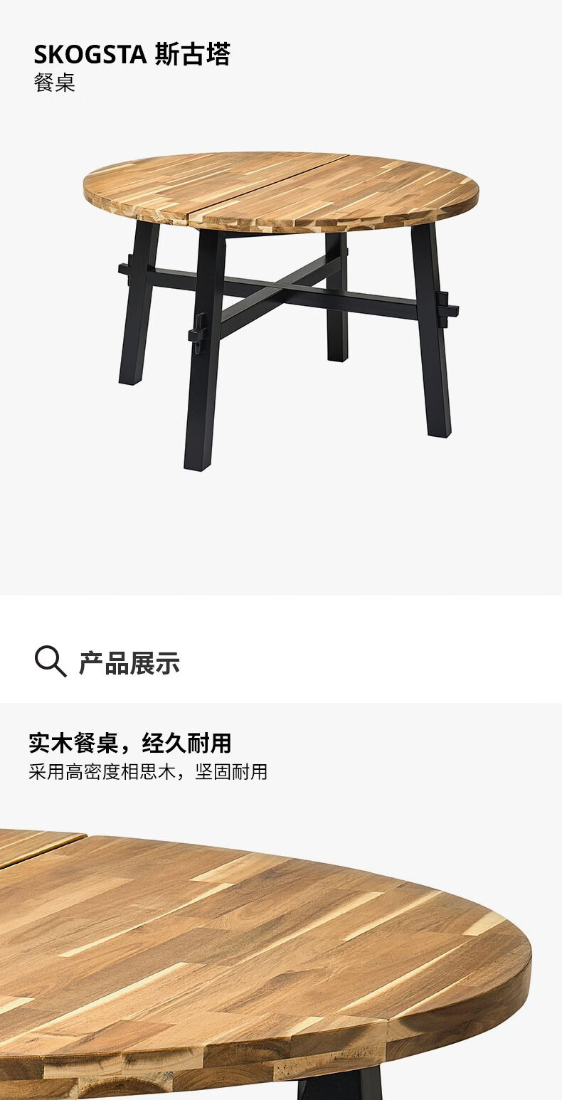 宜家(IKEA)【新品】SKOGSTA斯古塔圆形实木餐桌家用小户型餐厅家用 相思木黑色餐桌120cm