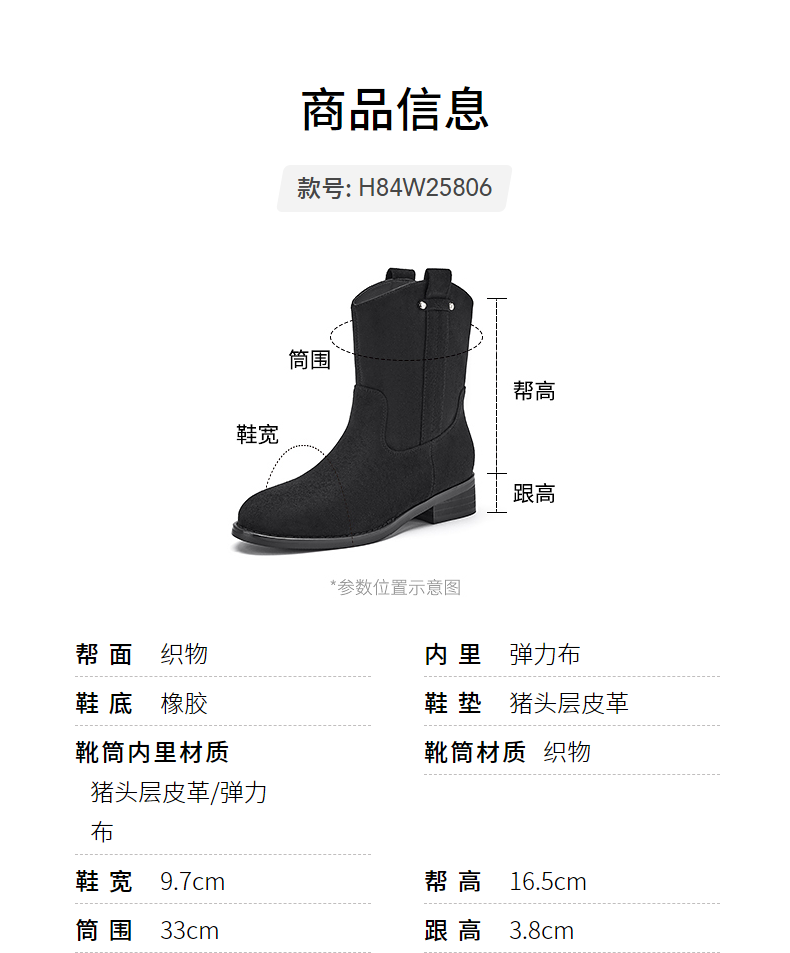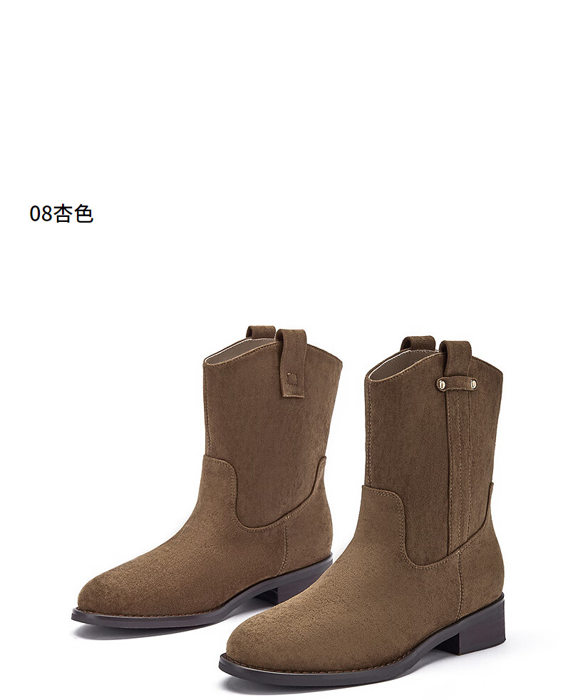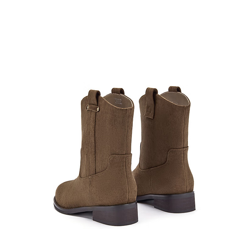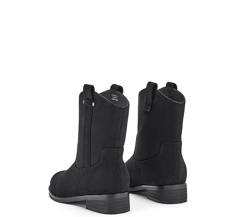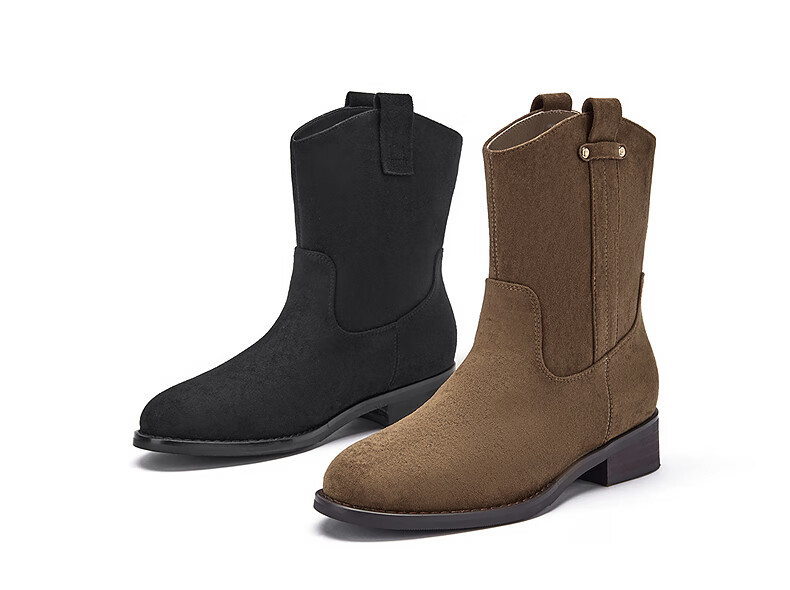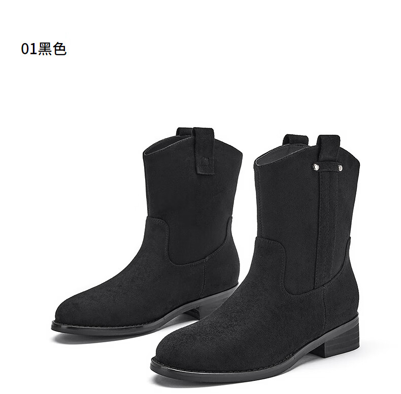热风西部牛仔靴女2025年冬季新款百搭中筒时装靴棕色美拉德靴子女 01黑色 34