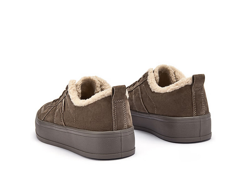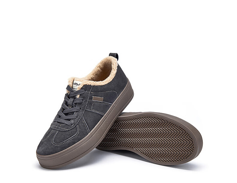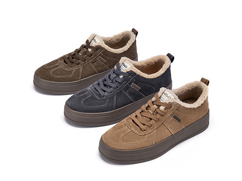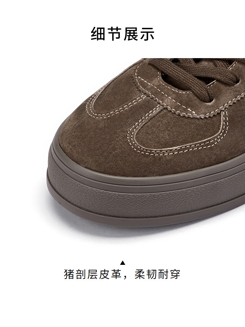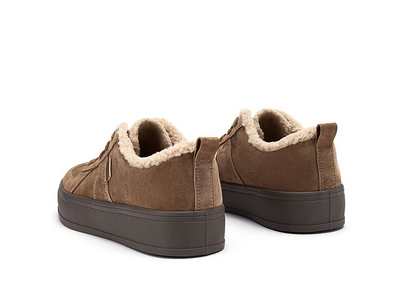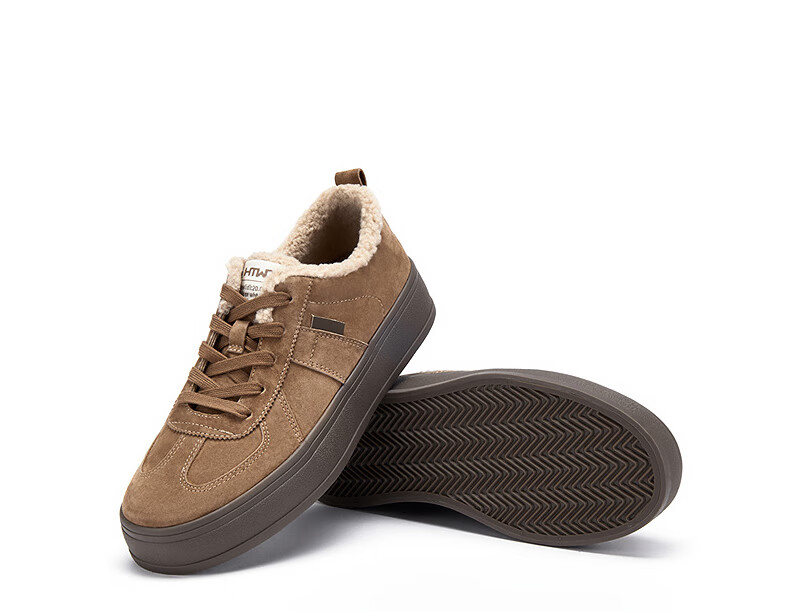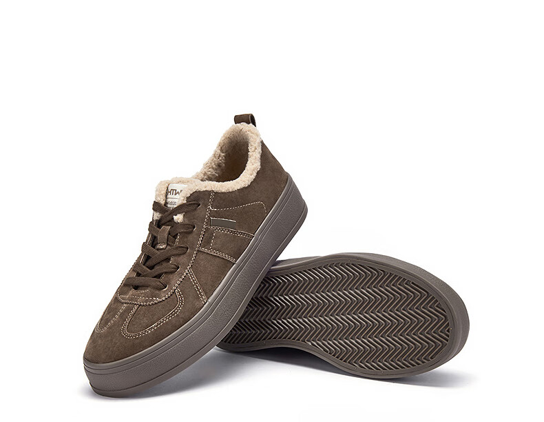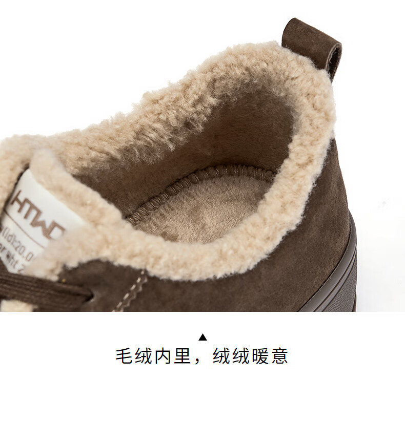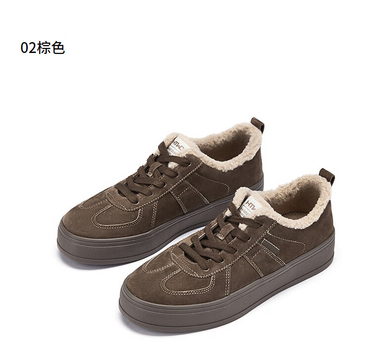 热风(Hotwind)男鞋2025年冬季新款加绒复古板鞋百搭增高休闲鞋棕色德训鞋子 02棕色 38