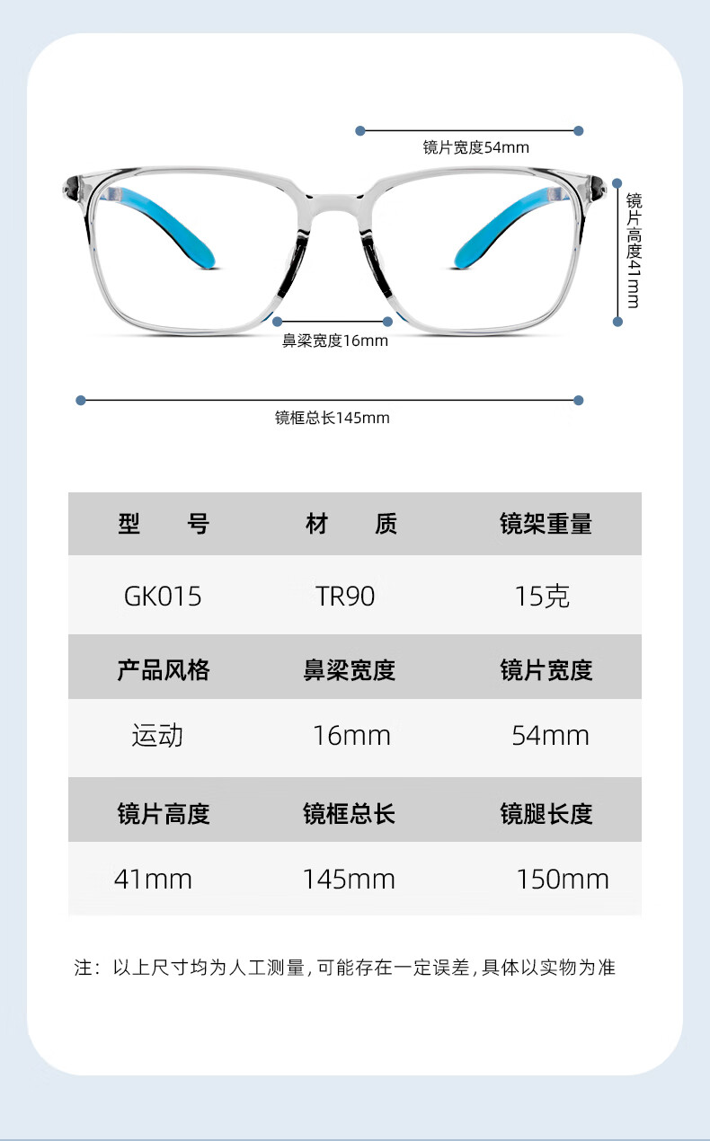 Gameking运动近视眼镜男防蓝光跑步防滑篮球眼镜框架可配度数 GK015开学