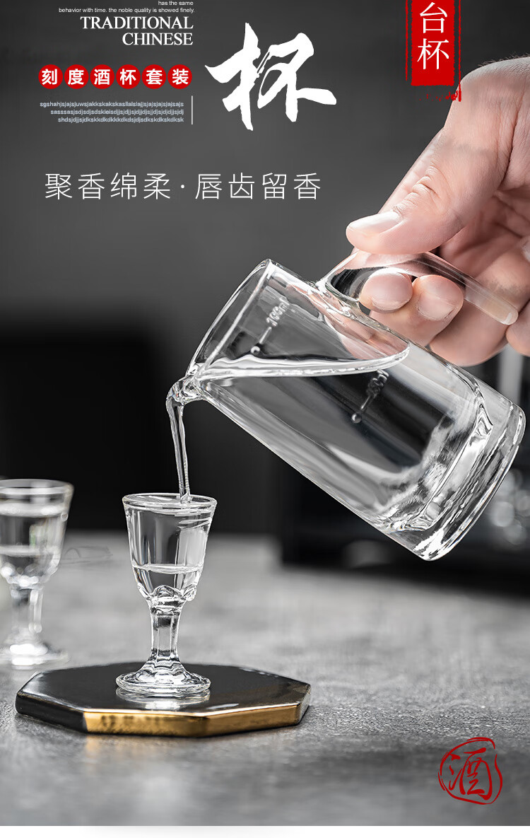 青苹果白酒杯分酒器套装 一口杯小酒杯刻度12件套家用饭店用
