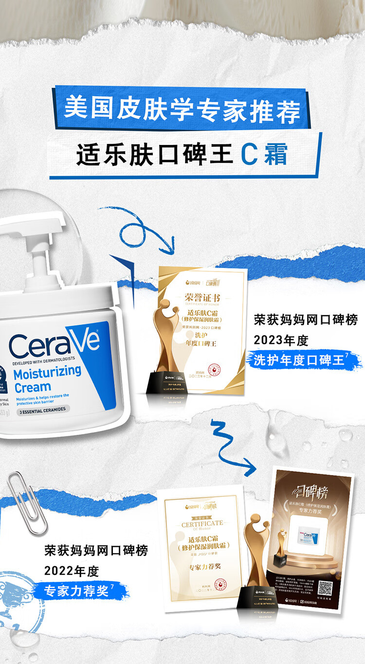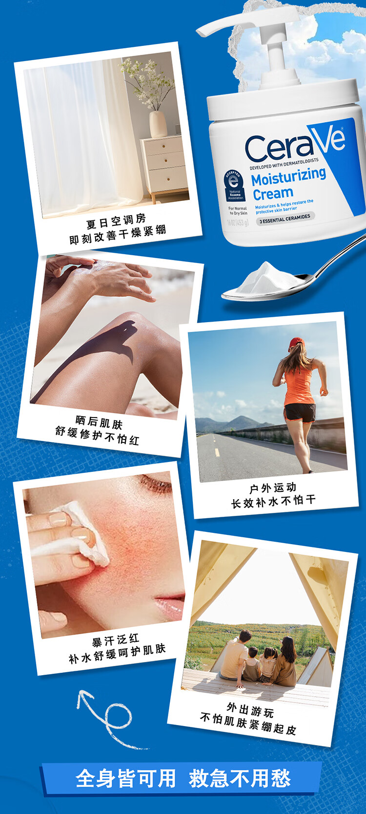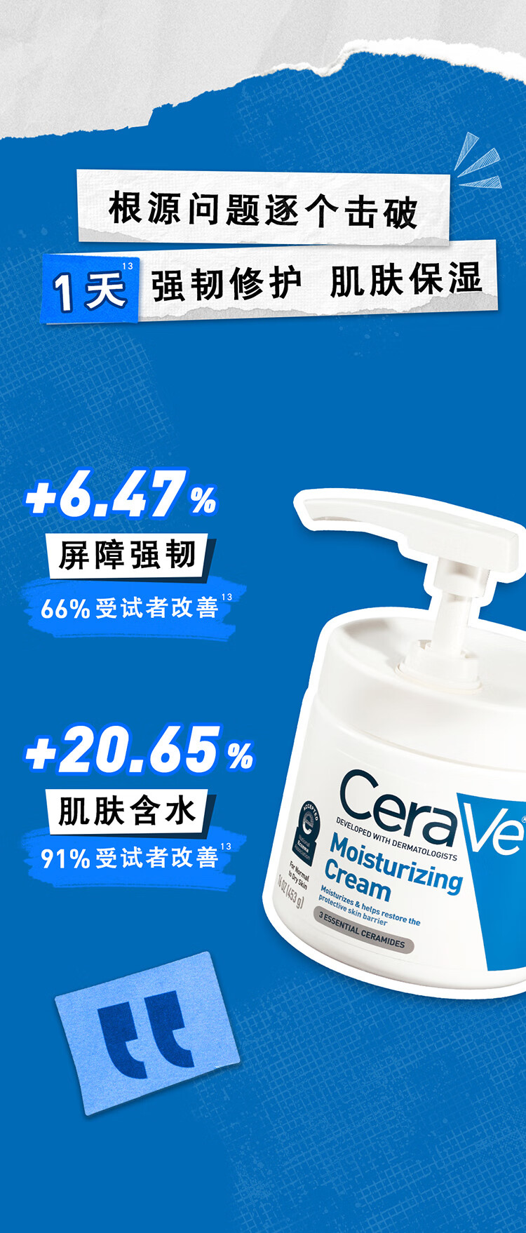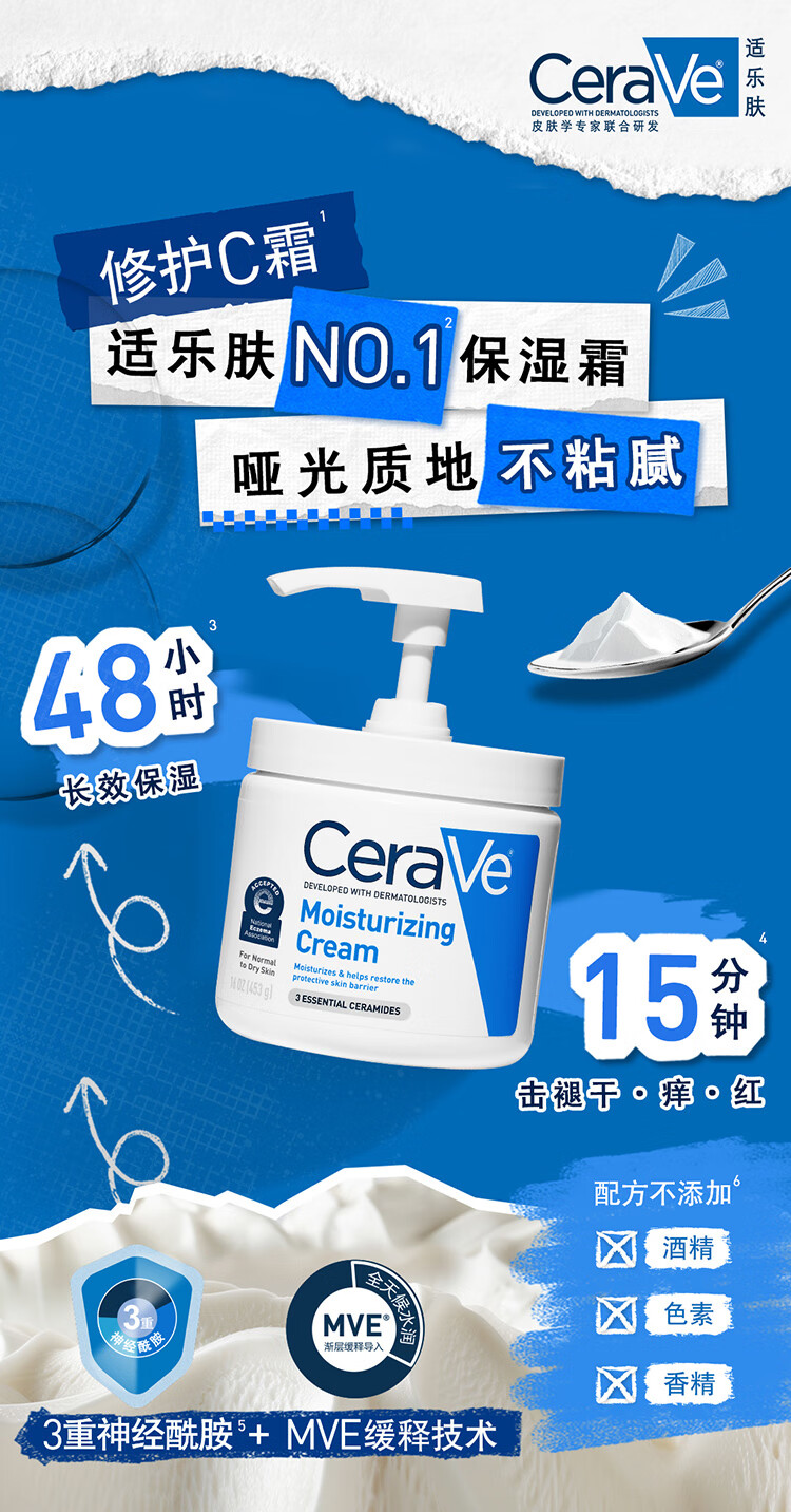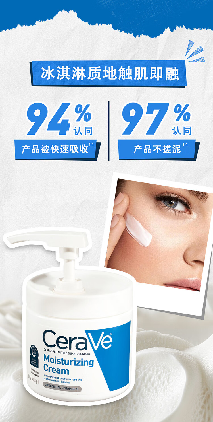 适乐肤(CeraVe)保湿补水润肤霜453g(C霜神经酰胺面霜修护屏障)滋润生日礼物
