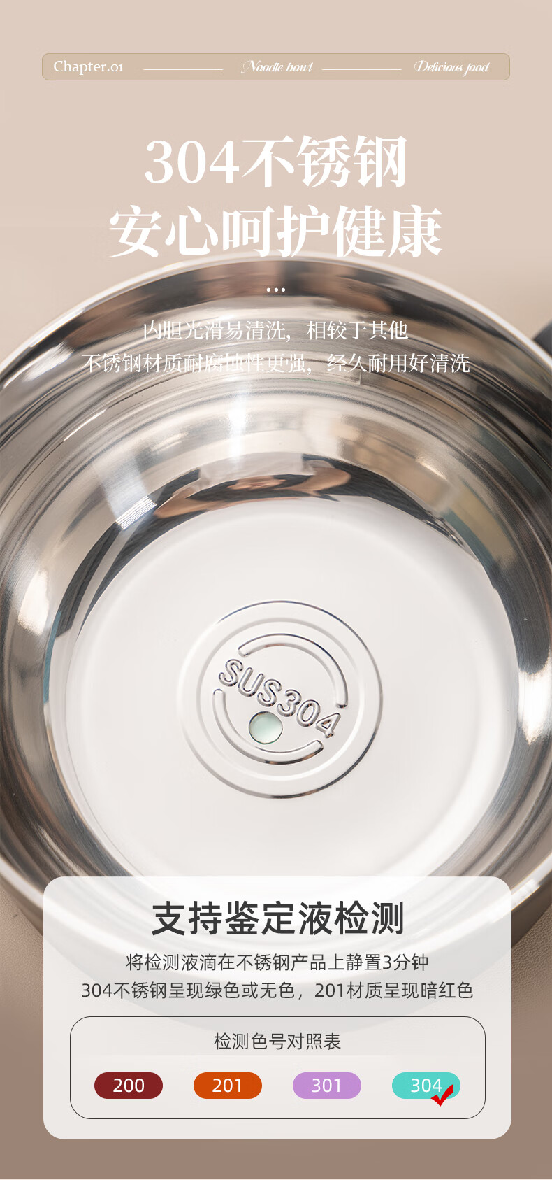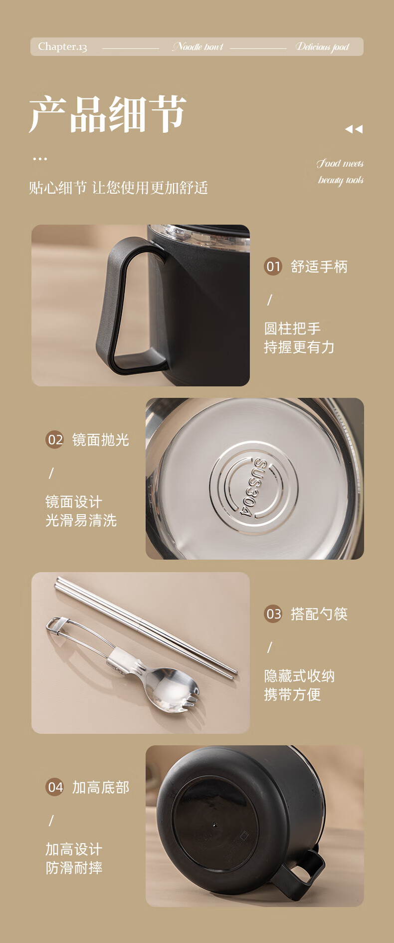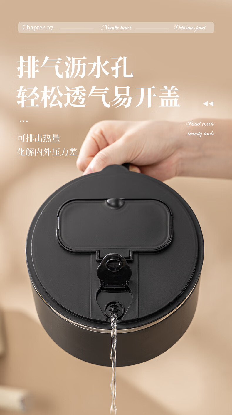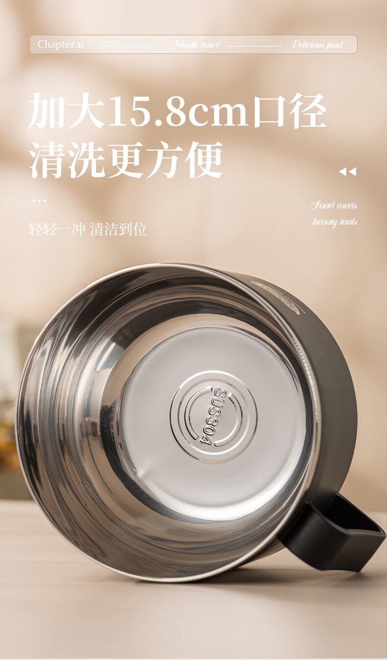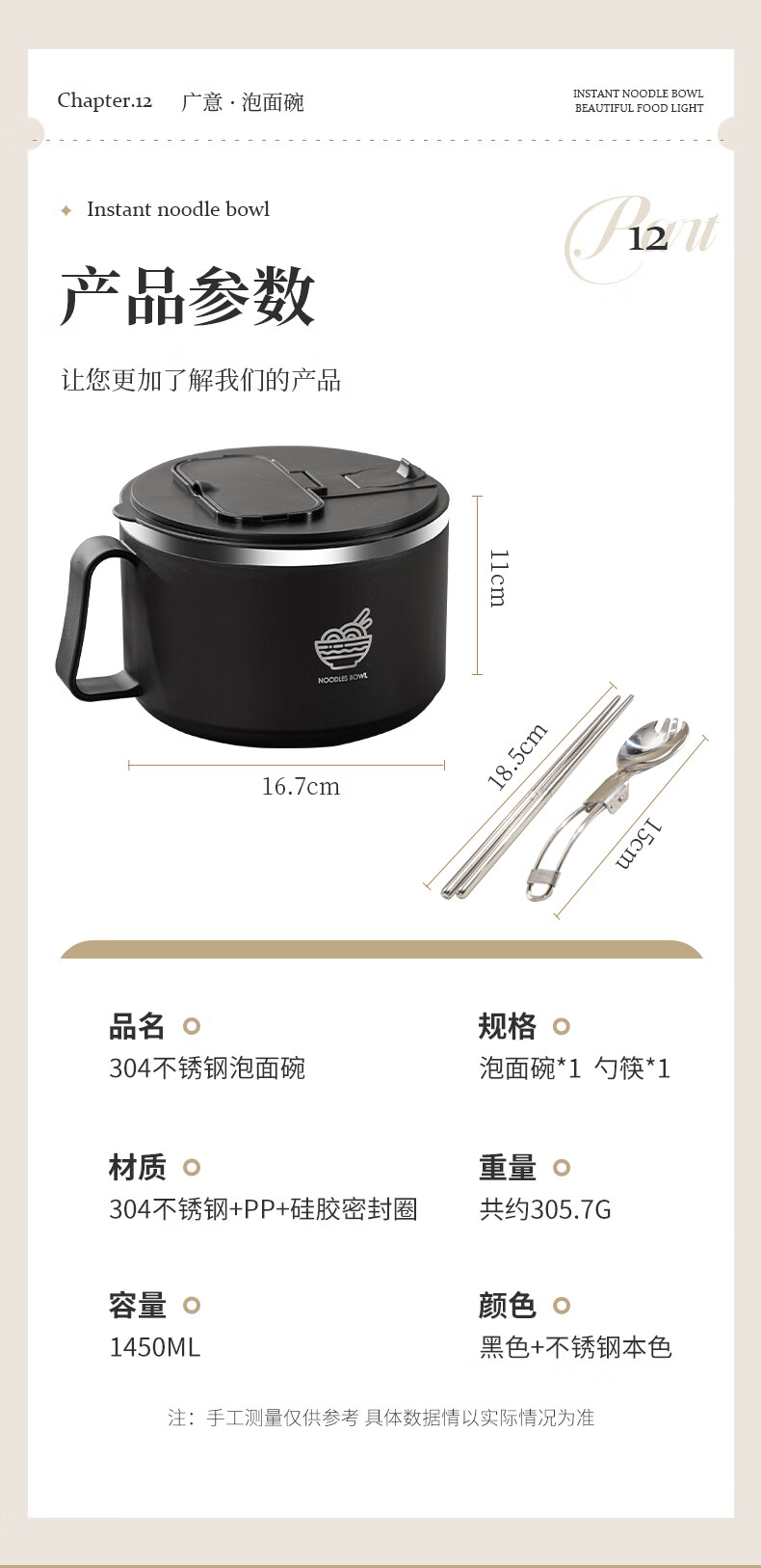 广意 304不锈钢泡面碗 学生上班族饭盒大容量大号 黑色配勺筷GY7348