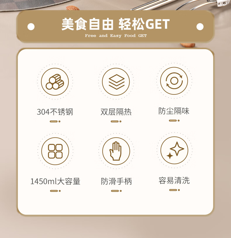 爱仕达(ASD)饭盒保温提锅316L不锈钢真空保温桶2.5L便携保温便当盒RWS25T10WG