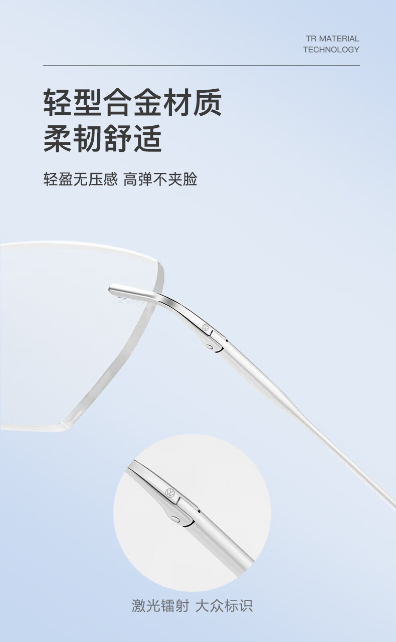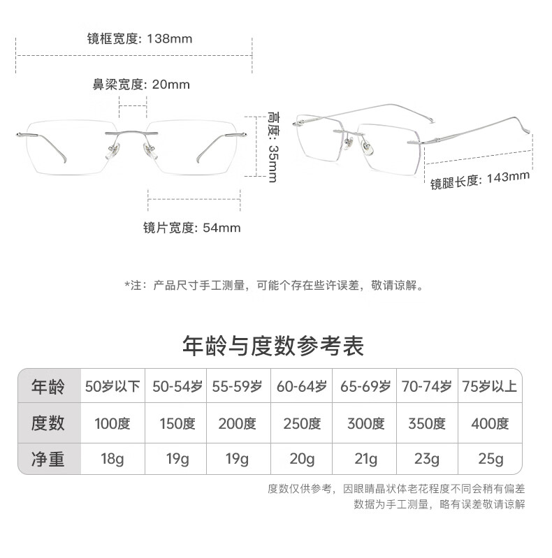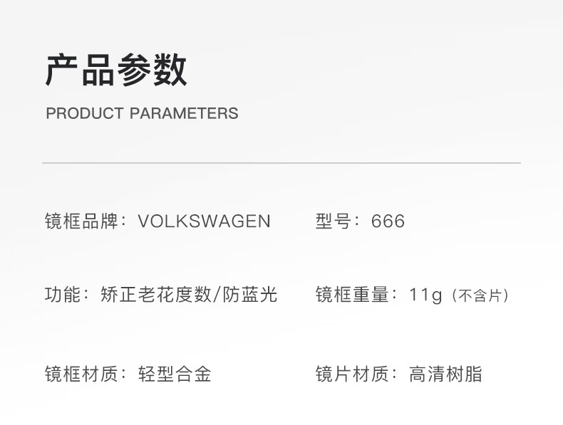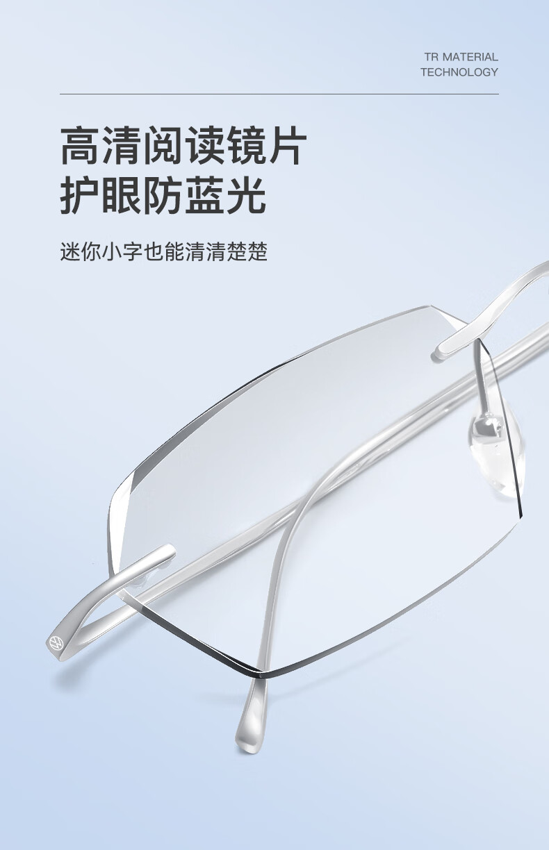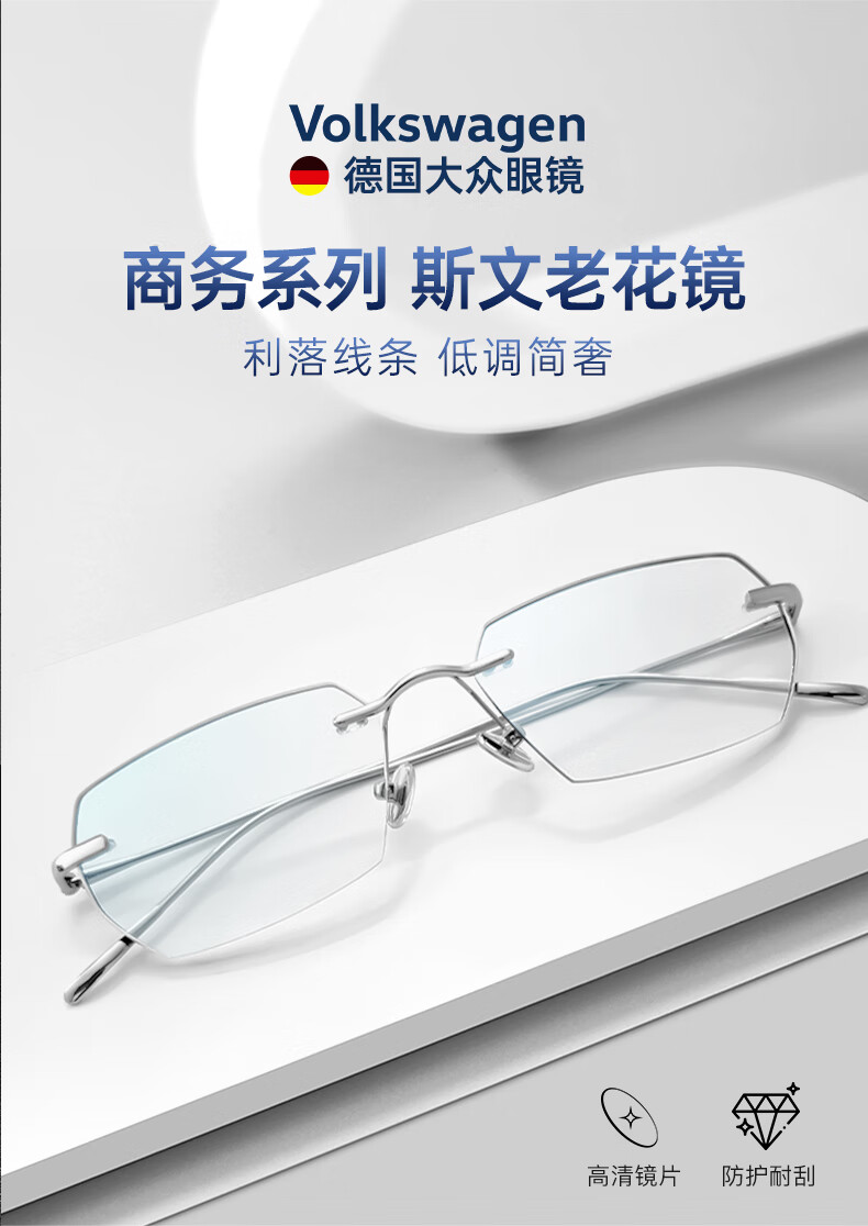 VOLKSWAGEN德国大众正品高端无框老花眼镜男士超轻防蓝光老花镜 666-150