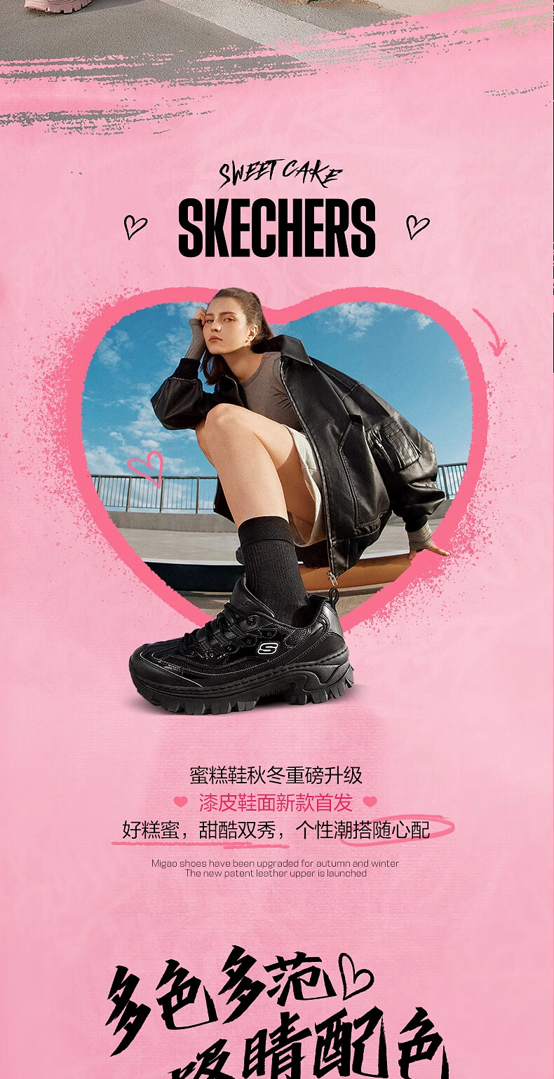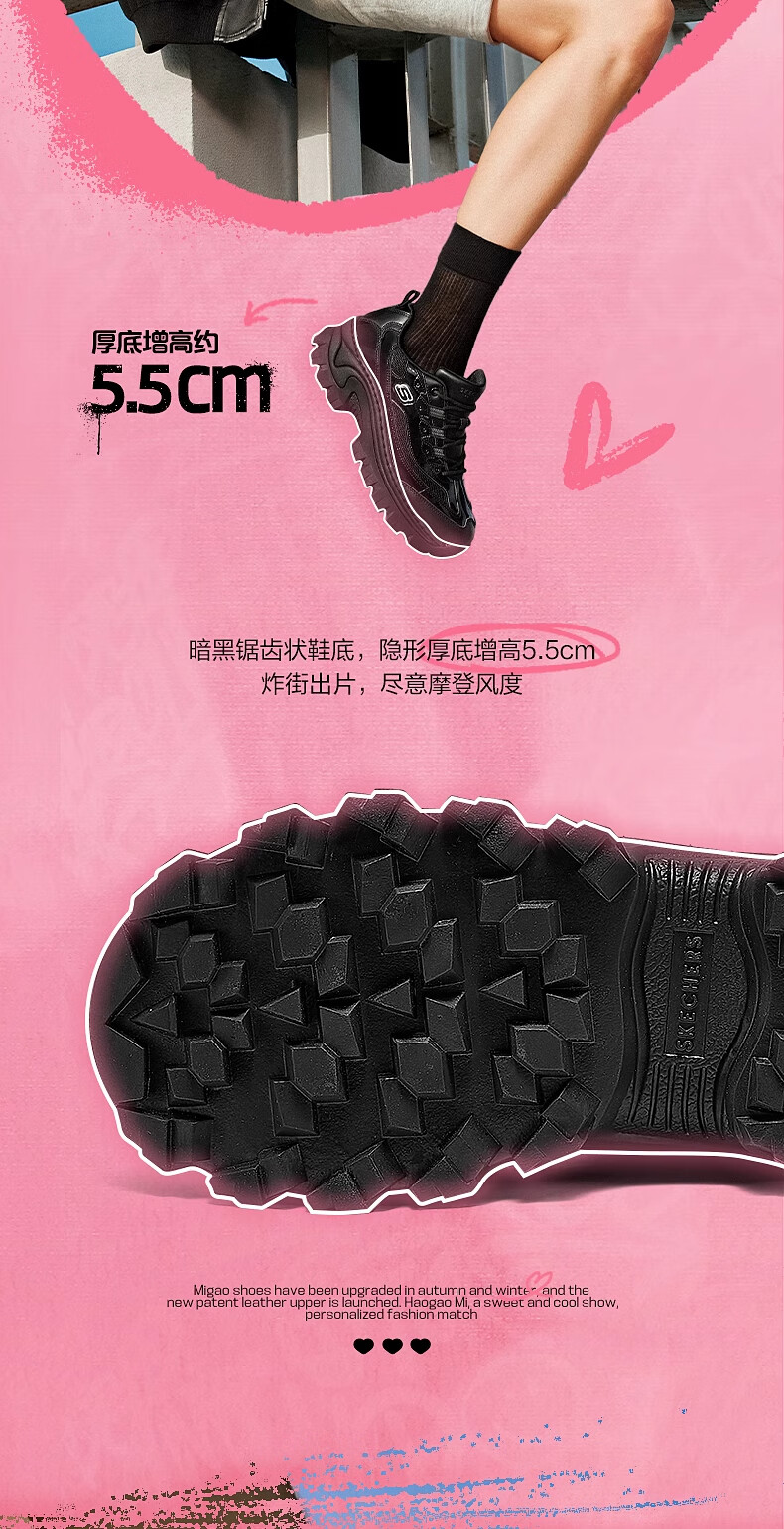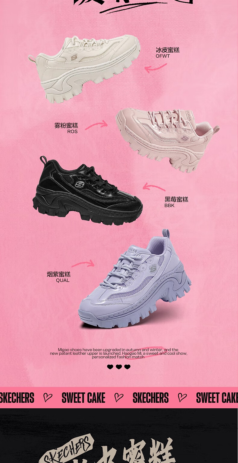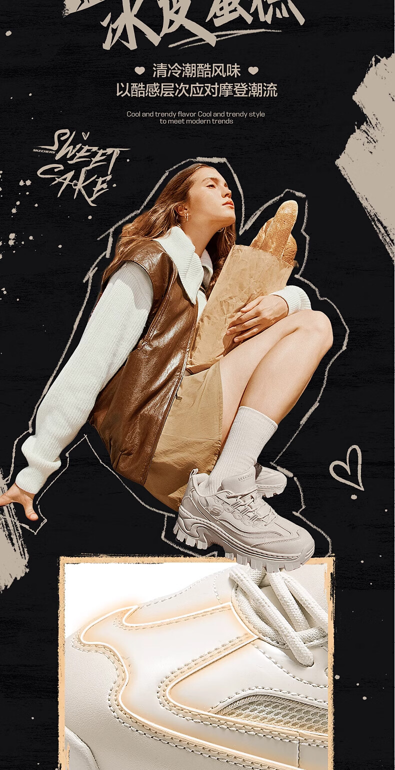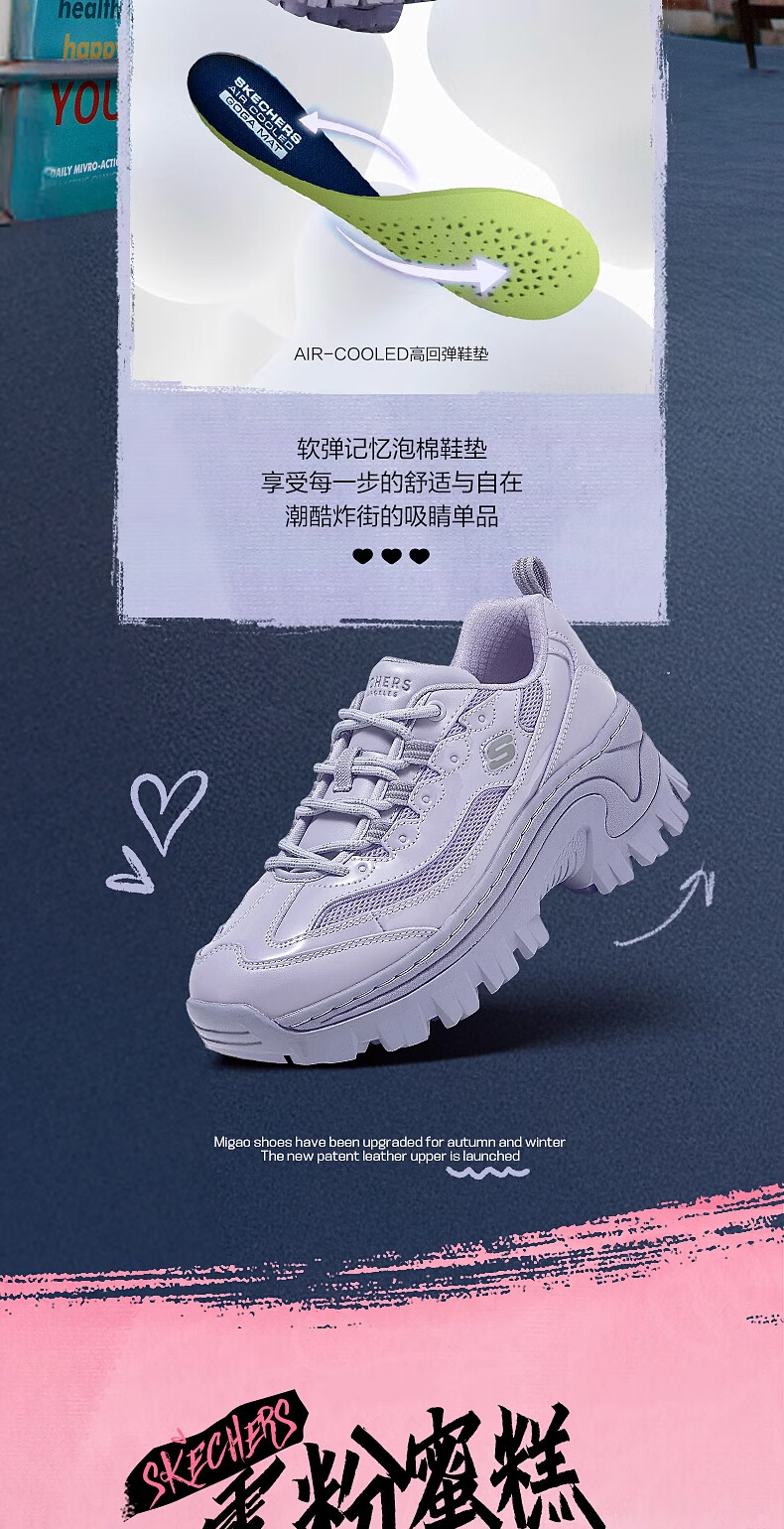 斯凯奇(Skechers)蜜糕鞋女鞋秋季厚底增高老爹鞋时尚百搭户外休闲运动熊猫鞋177223