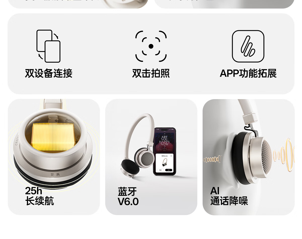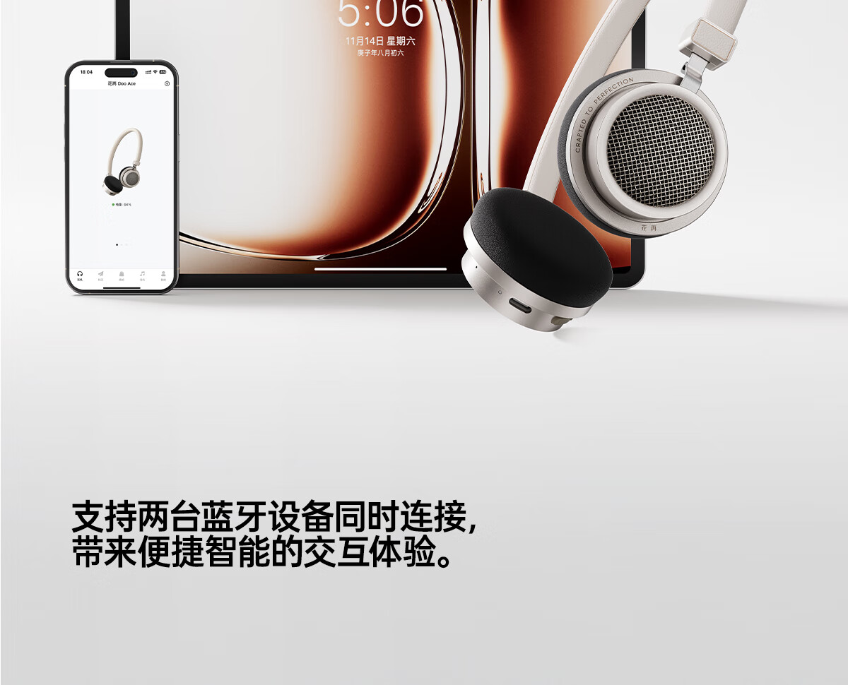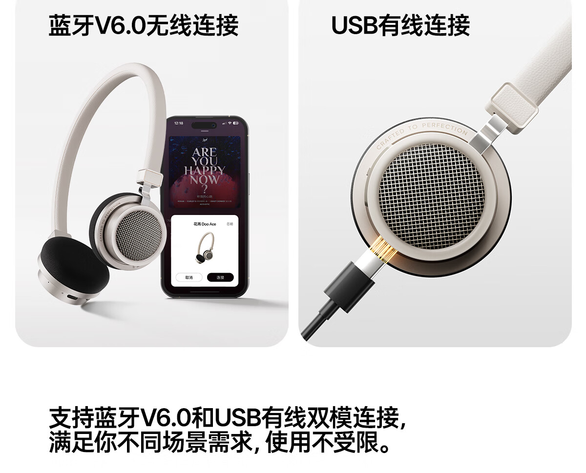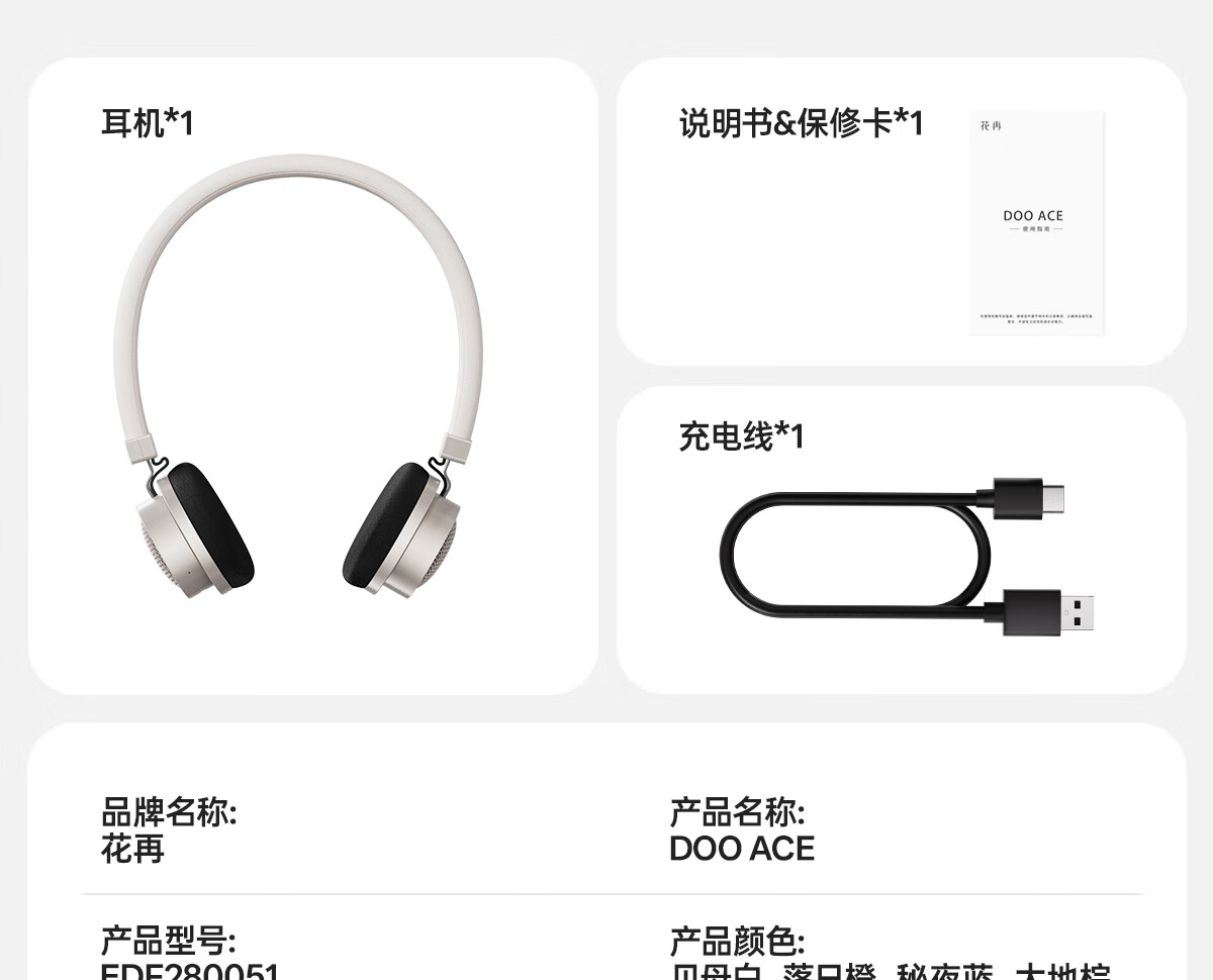 漫步者花再Doo Ace 头戴式无线蓝牙耳机 复古时尚穿搭 蓝牙6.0 有线蓝牙双模连接 适用苹果华为小米 贝母白